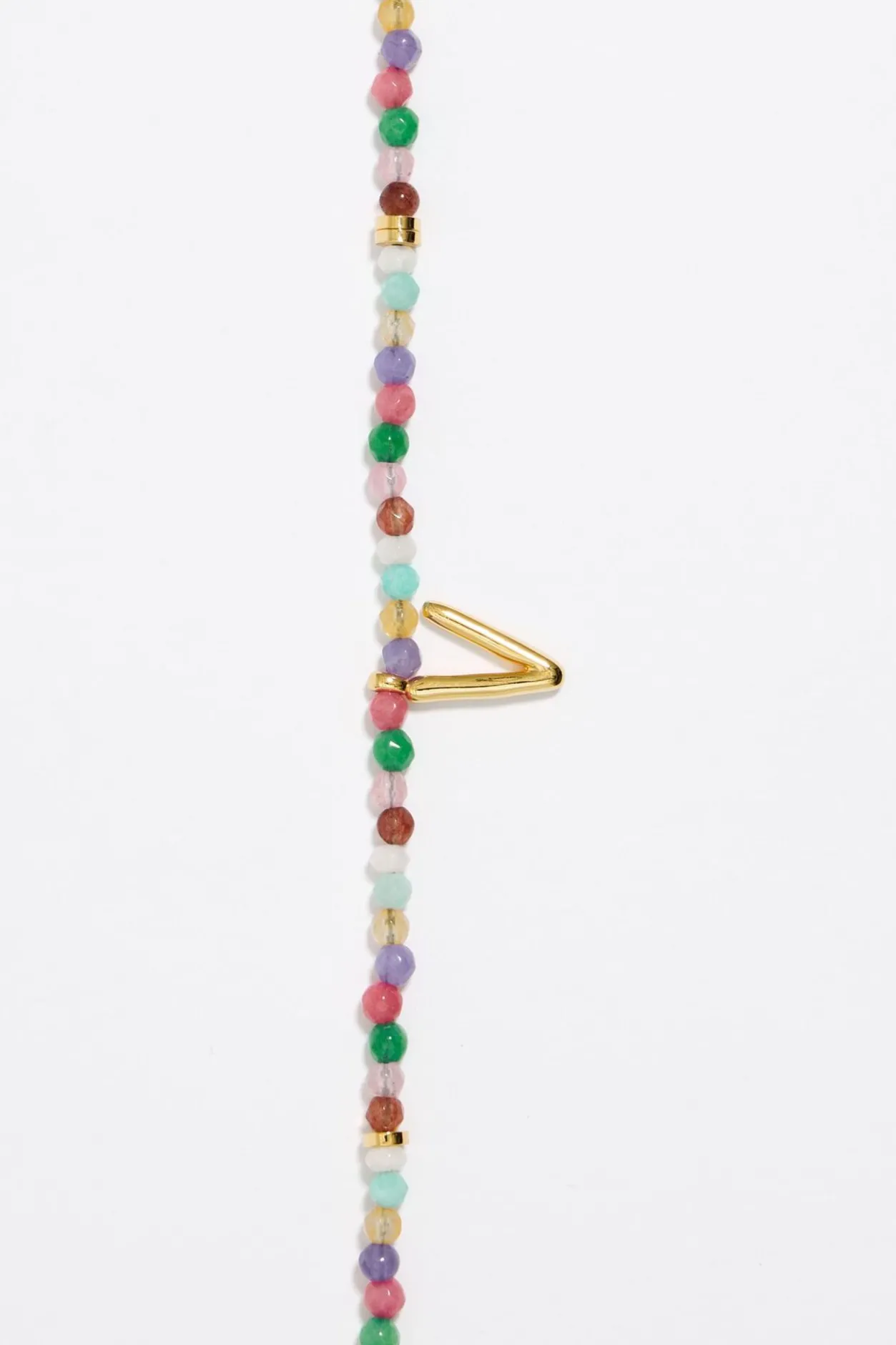 Collar Corto De Piedras Multicolores Con Letra V De Metal Dorado. Modelo Con Cierre De MosquetÓN Y Pieza En Forma De CorazÓN De Metal Dorado Con Cristal.