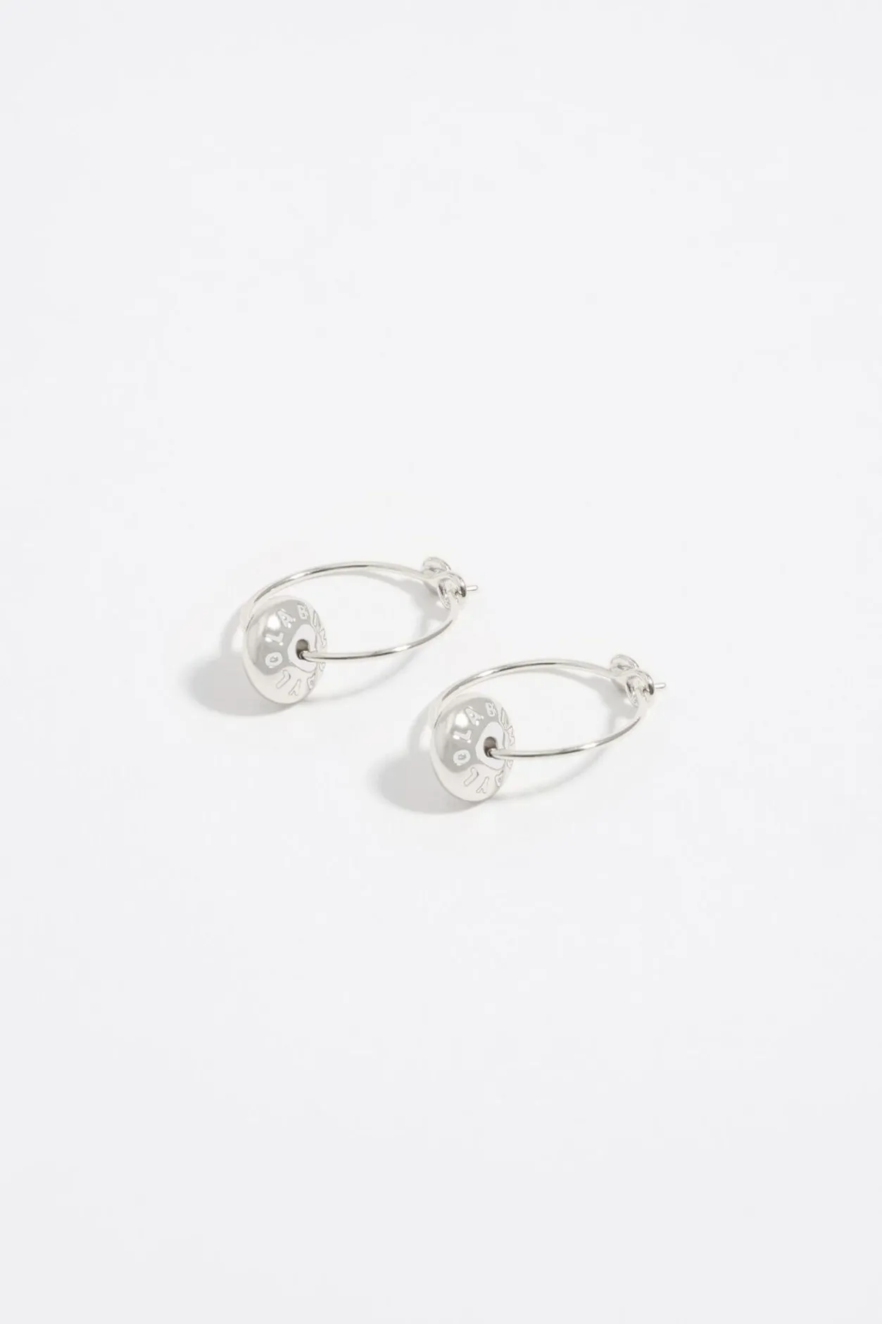 Pendientes De Aro De Metal Plateado Con Logo Candy En Color Plata. Modelo Con Cierre De Gancho. Personalizado Con El Logo Grabado.