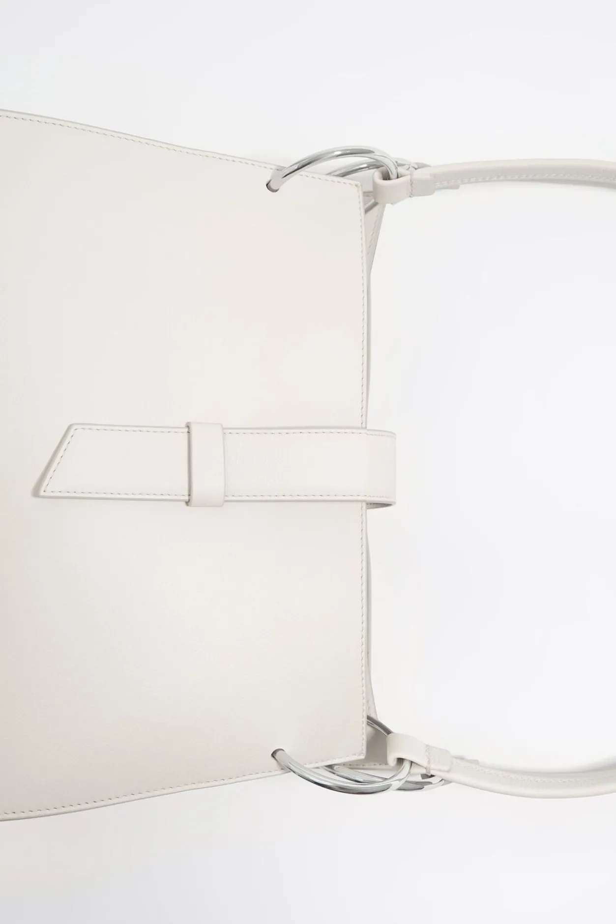Bolso Shopper De Piel En Color Blanco Roto. Modelo De TamaÑO Grande, Cierre Con Tira De Piel, Doble Asa De Piel Y Doble Bolsillo Interior. Exterior Personalizado Con Logo MetÁLico.