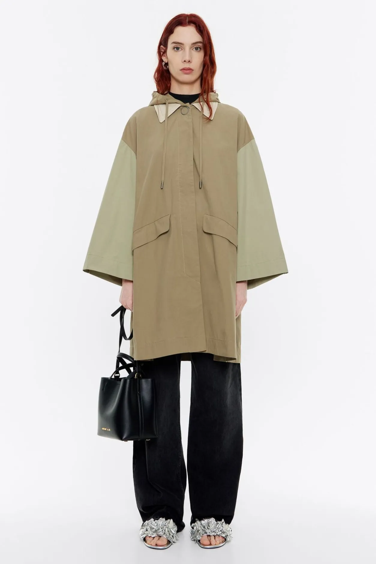 Gabardina Midi De AlgodÓN En Color Caqui Tricolor. Modelo De Corte LÍNea A, Cuello Camisero Con Capucha Desmontable, Manga Larga Ancha Y PuÑOs Con Trabilla Y BotÓN. Cierre Con Solapa Delantera Y Botones A PresiÓN MetÁLicos Visibles.