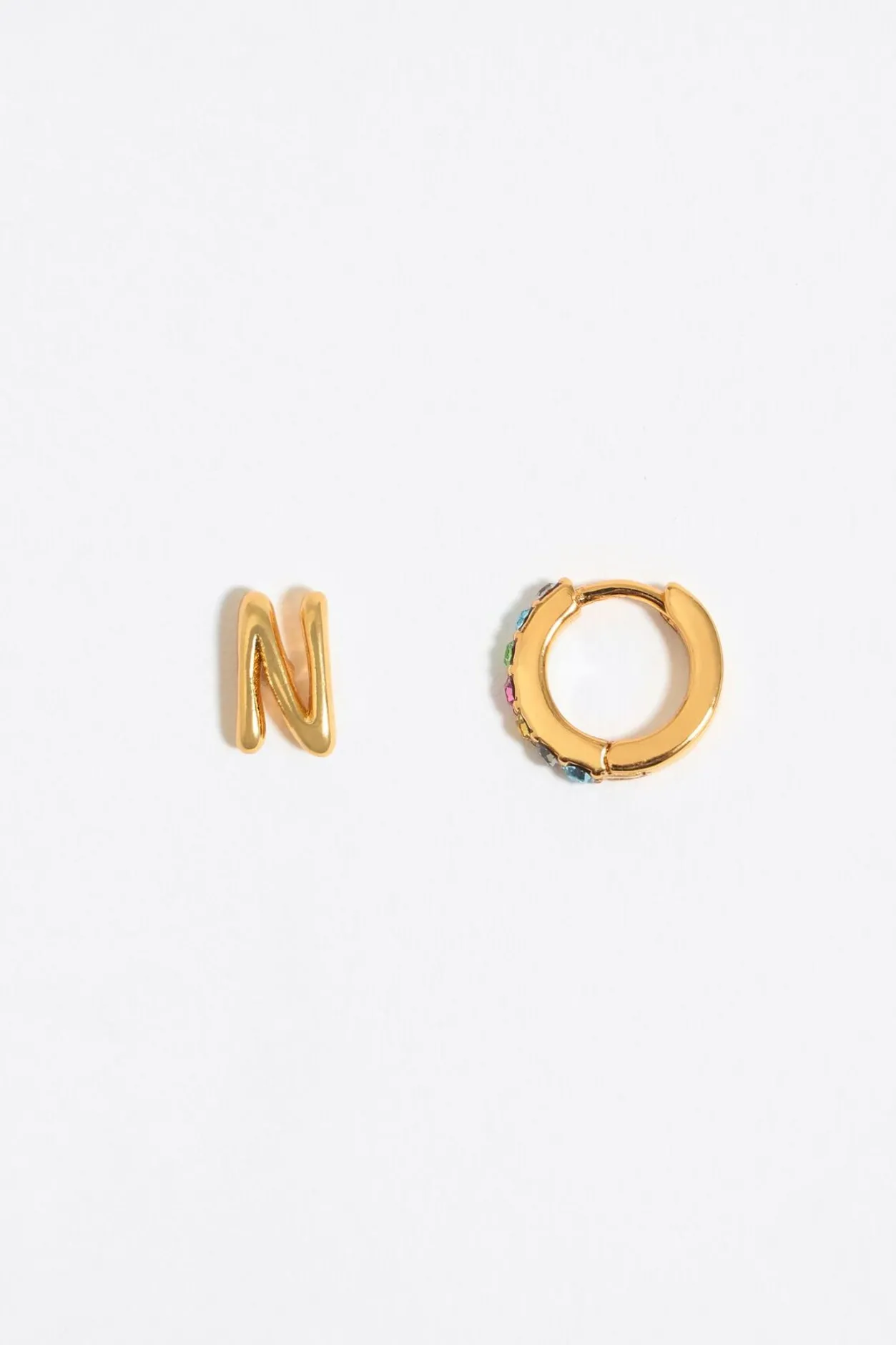 Best Sale BIMBA Y LOLA Pendientes Letra N Y Aro Mini Cristales Multicolores
