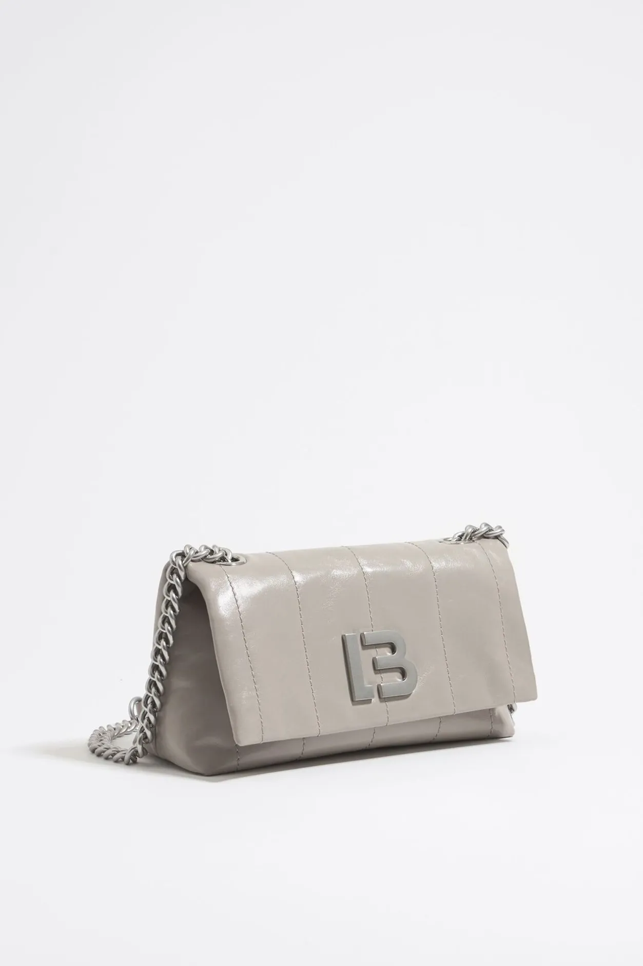 Bolso Bandolera De Piel En Color Gris Verdoso. Modelo De TamaÑO PequeÑO Con Cierre De Solapa Y Asa Bandolera De Piel Y De Cadena. Exterior Personalizado Con Logo Lb MetÁLico. Este Modelo Contiene 100% PoliÉSter Reciclado.