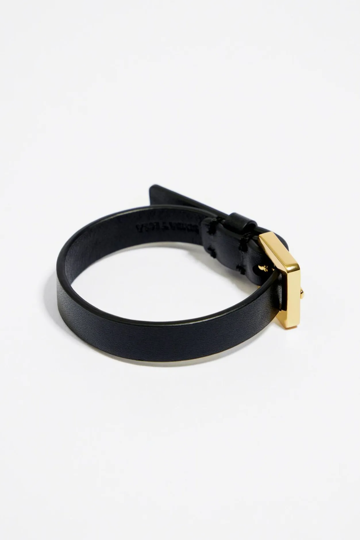 Pulsera Personalizable Con Correa De Piel. Modelo Con Cierre De Hebilla Dorada Y Logo Grabado.