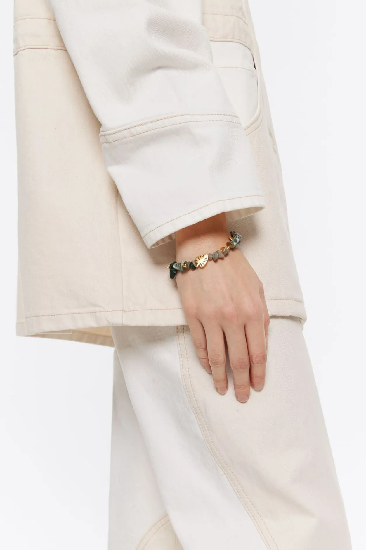 Cheap BIMBA Y LOLA Pulsera Piedras Verdes Y Hoja Dorada
