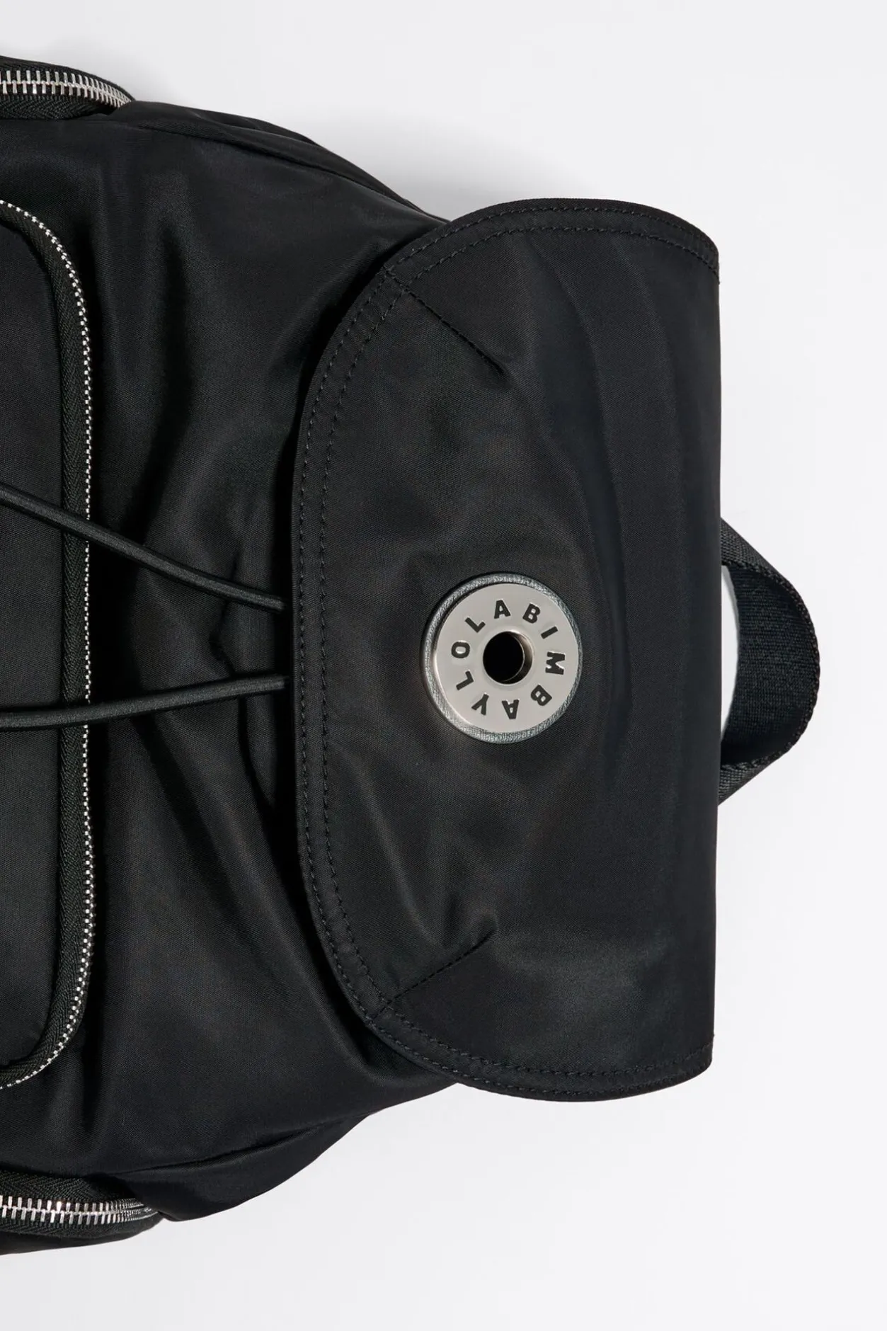 Mochila Multibolsillos De Tejido TÉCnico En Color Negro. Modelo De TamaÑO Mediano, Con Cierre MagnÉTico Y De CordÓN Ajustable. Bolsillo Interior Con Cremallera. Exterior Personalizado Con Logo Chimo MetÁLico.