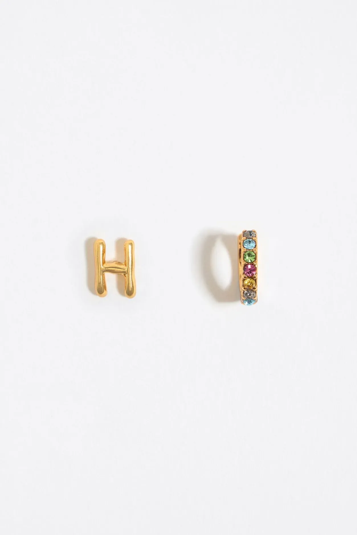 Clearance BIMBA Y LOLA Pendientes Letra H Y Aro Mini Cristales Multicolores