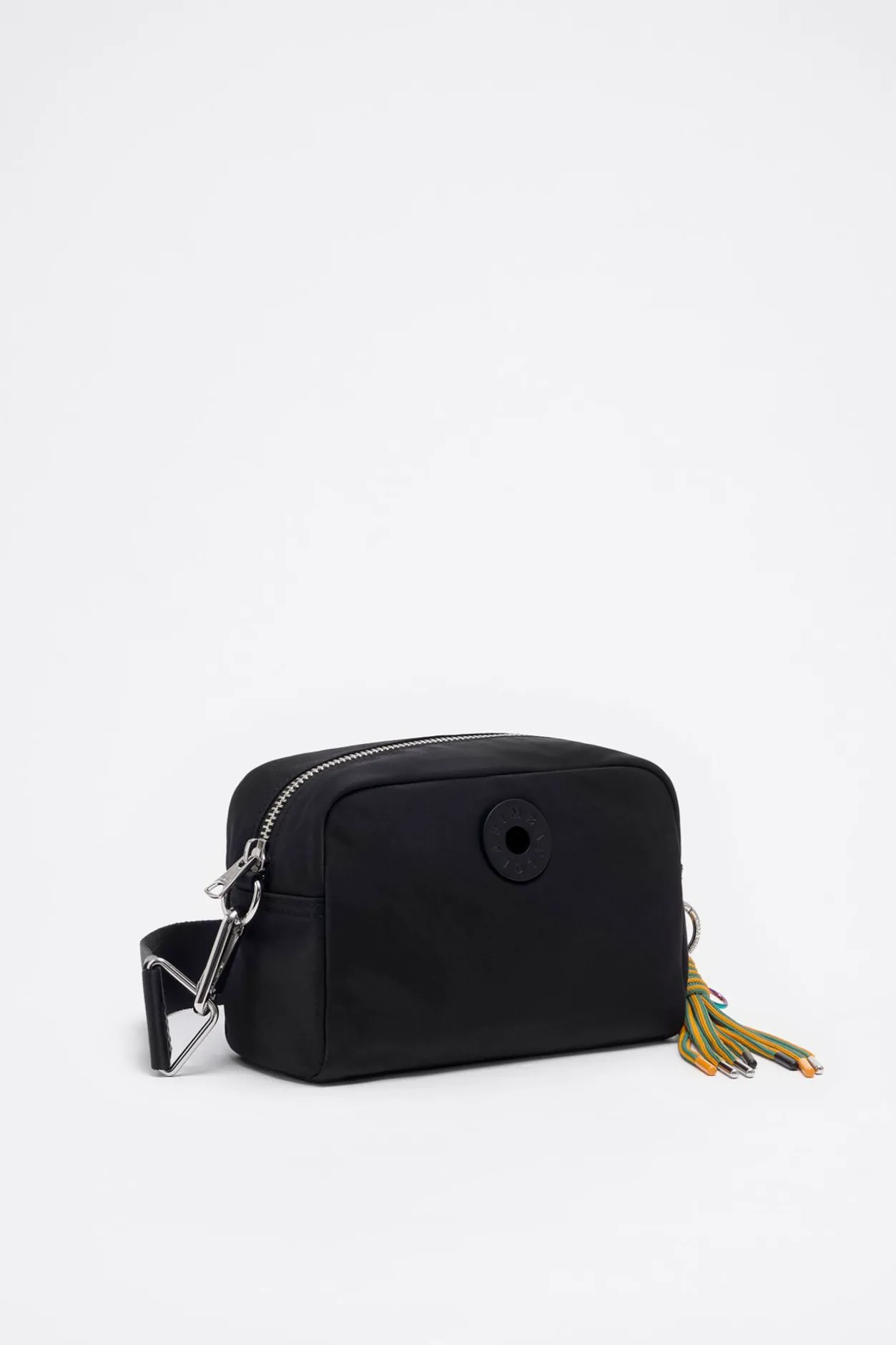 Bolso Bandolera De Nylon En Color Negro. Modelo De TamaÑO PequeÑO Con Cierre De Cremallera Y Asa Logotipada ExtraÍBle. Exterior Personalizado Con Logo Chimo.