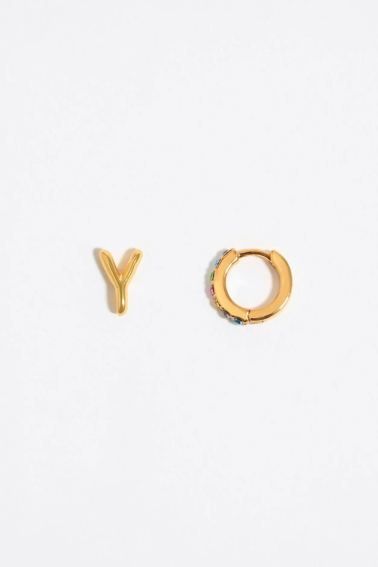 Fashion BIMBA Y LOLA Pendientes Letra Y Y Aro Mini Cristales Multicolores