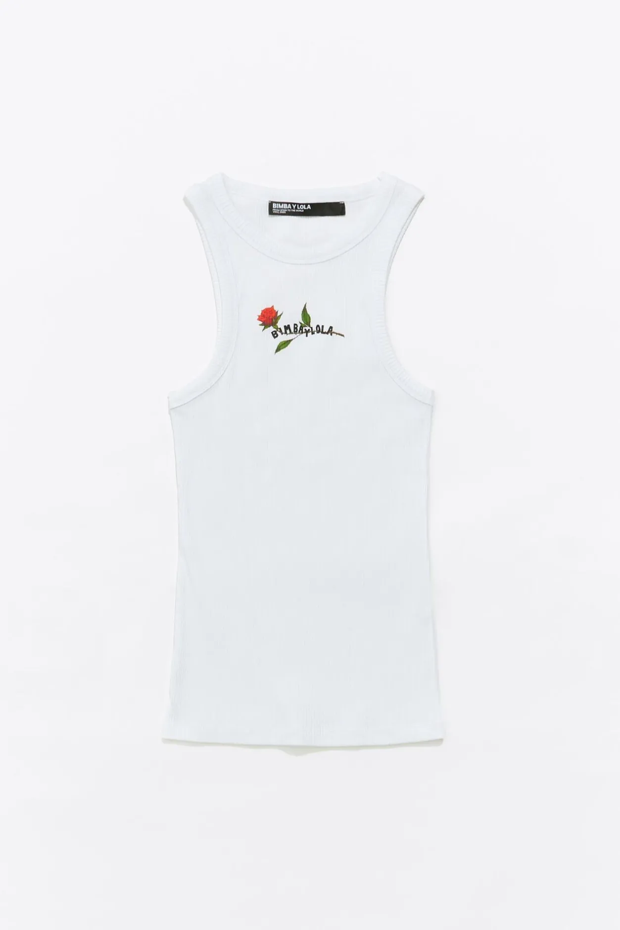 Top Ajustado De AlgodÓN En Color Blanco. Modelo Con Escote Caja, Manga Sisa Y Logo Estampado En El Frontal.