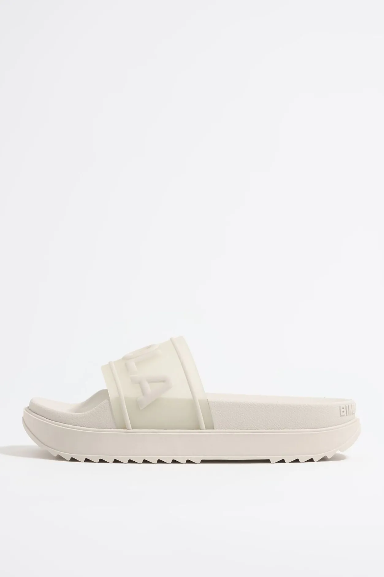 Chancla Tipo Pala De Plataforma Con Logo A Tono En Color Blanco. Modelo Con Pala Logotipada Y Fondo Transparente. Suela Logotipada Con Acabado Dentado.