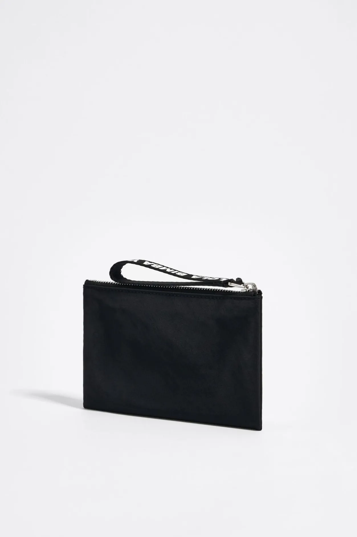 Cartera De Nylon En Color Negro. Modelo Con Dos Bolsillos De Cremallera, Asa En Tejido Logotipada Y Tarjetero Interior. Exterior Personalizado Con Logo MetÁLico.