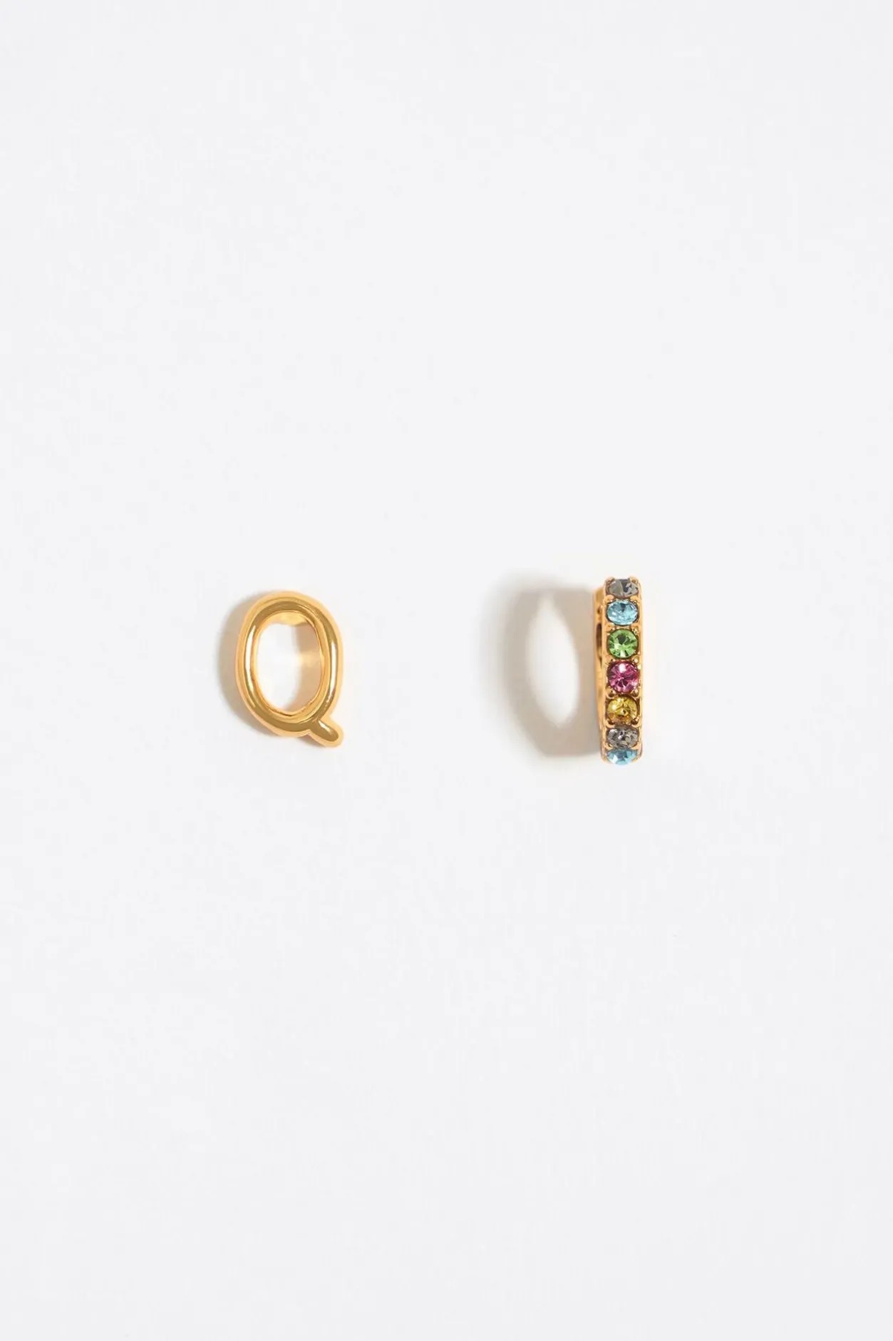 Hot BIMBA Y LOLA Pendientes Letra Q Y Aro Mini Cristales Multicolores