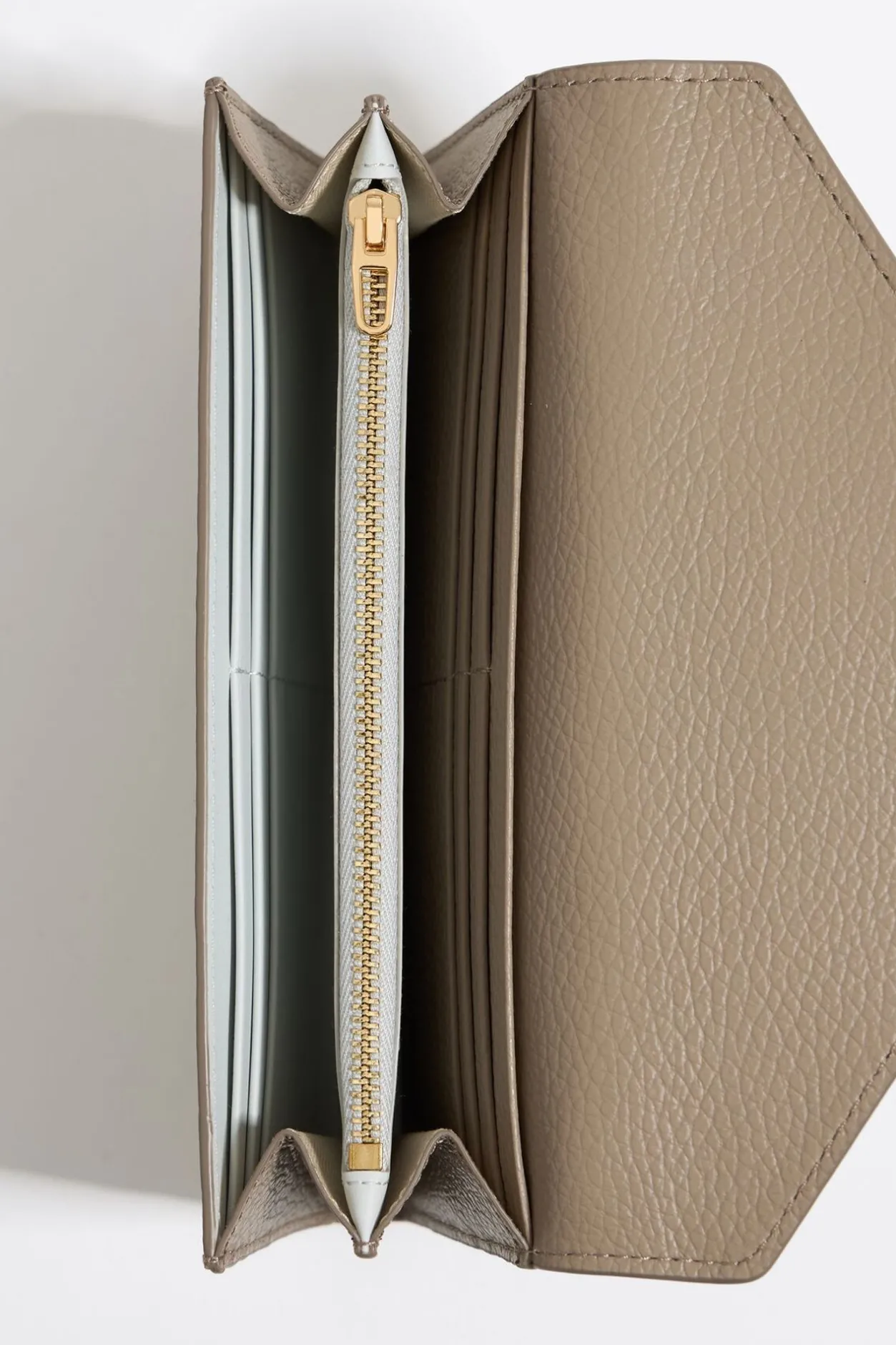 Billetera Continental De Piel En Color Topo. Modelo Con Cierre De Cremallera Y A PresiÓN, Interior Con Monedero Y Tarjetero, Y Bolsillo Exterior. Exterior Personalizado Con Logo Lb.