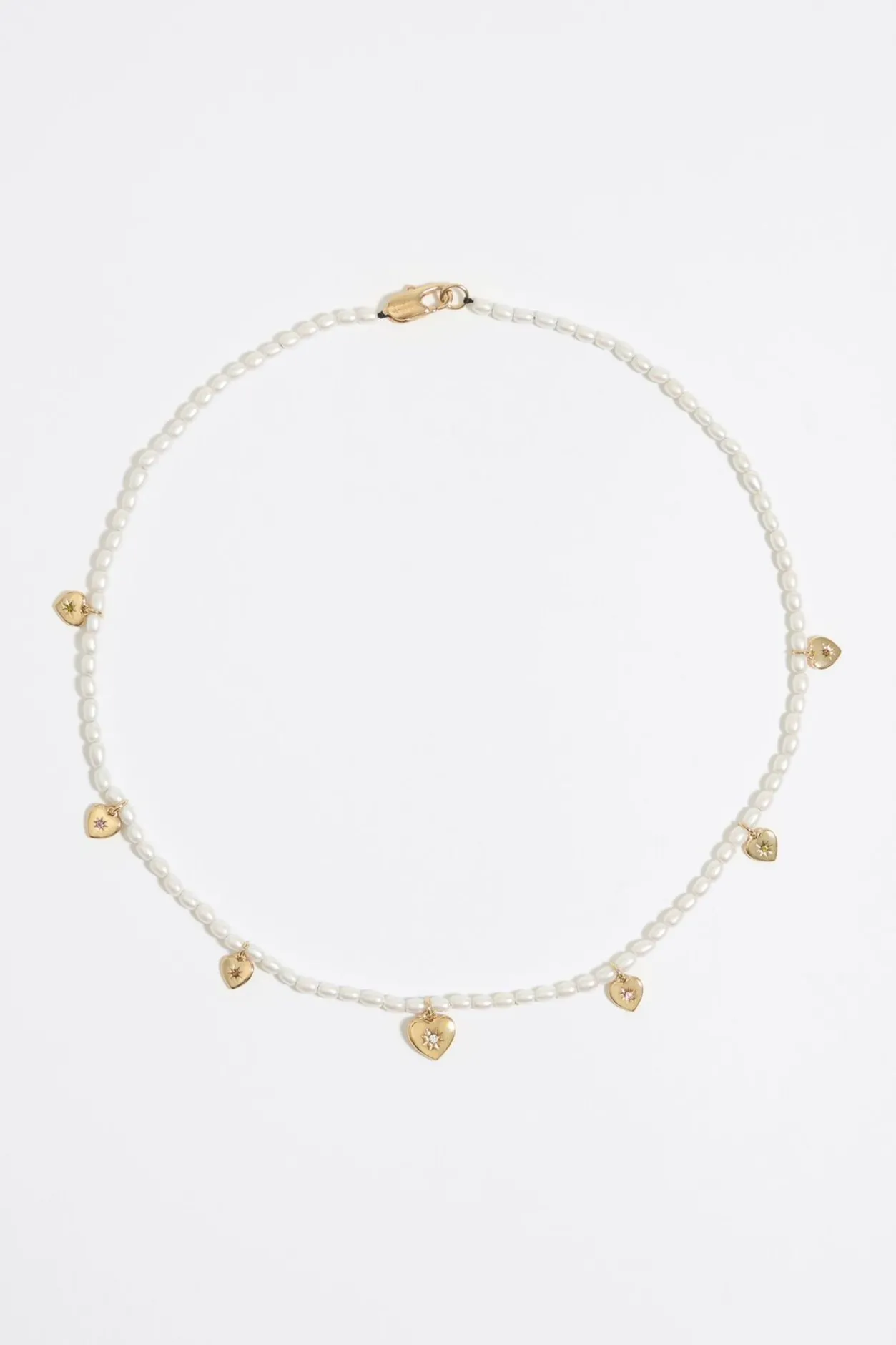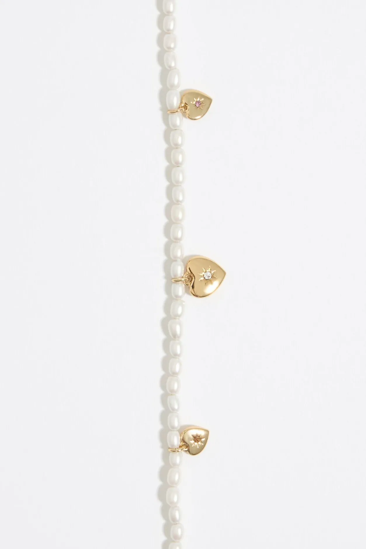 New BIMBA Y LOLA Collar Corazones Dorados Y Perlas