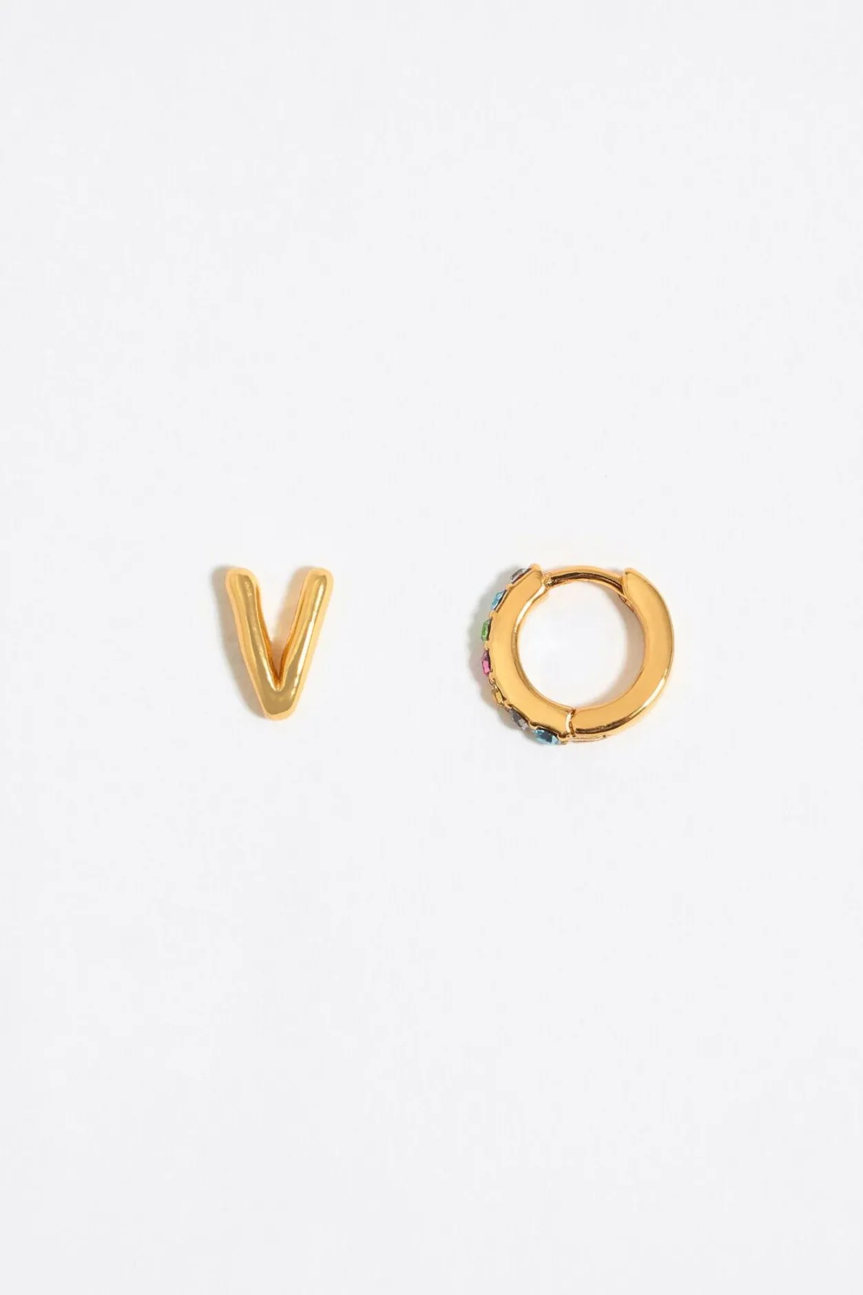 New BIMBA Y LOLA Pendientes Letra V Y Aro Mini Cristales Multicolores