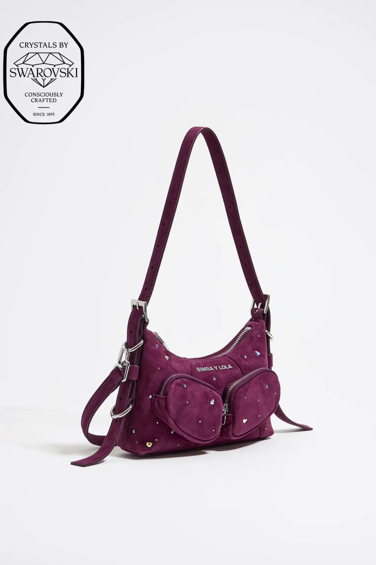 Online BIMBA Y LOLA Bolso Hobo Pocket Mini Piel Swarovski Berenjena