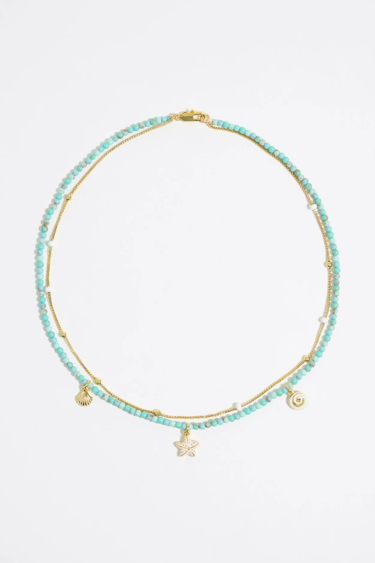 Online BIMBA Y LOLA Collar Doble Estrella De Mar Y Cadena Turquesa