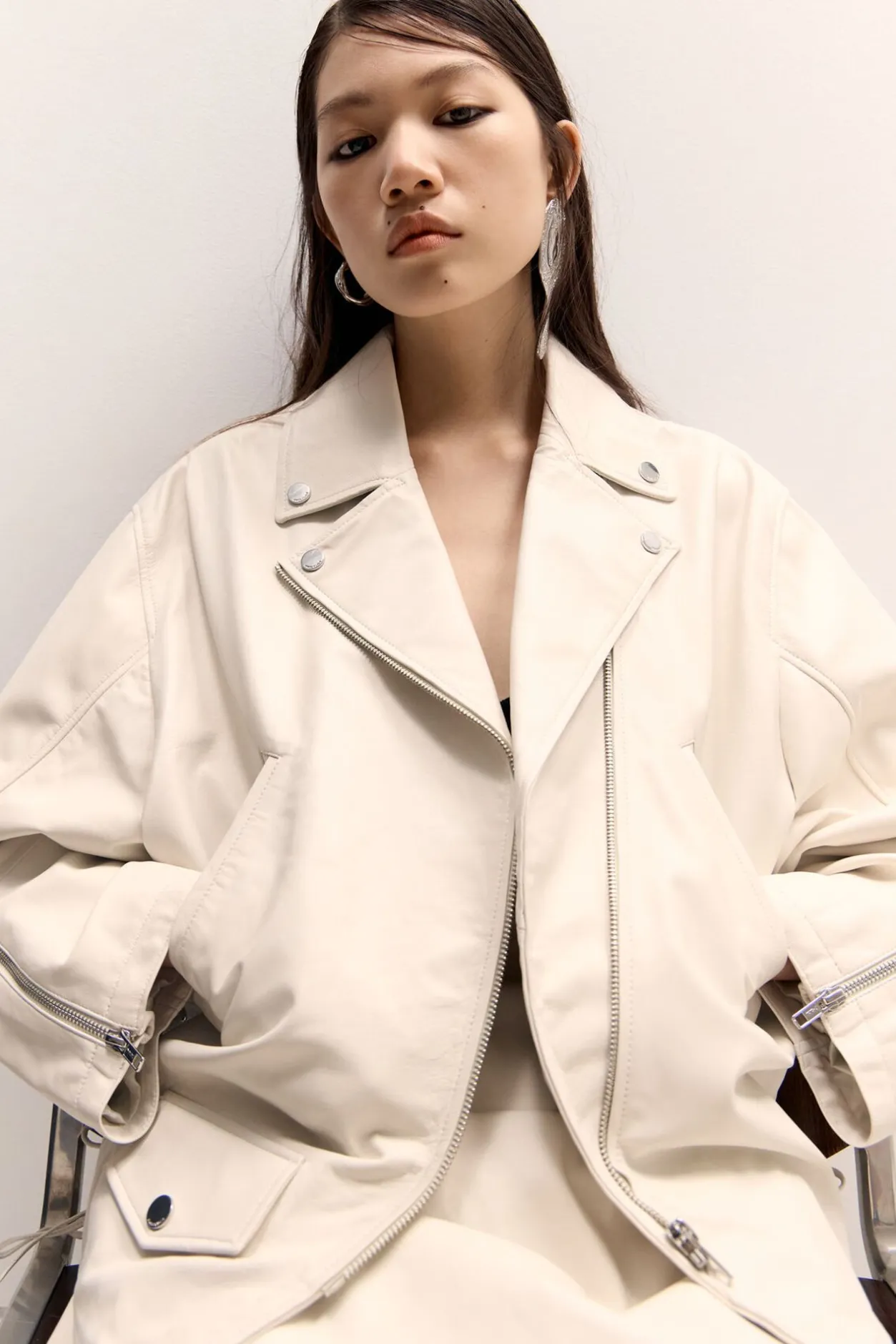 Outlet BIMBA Y LOLA Cazadora Biker Piel Gris Hielo