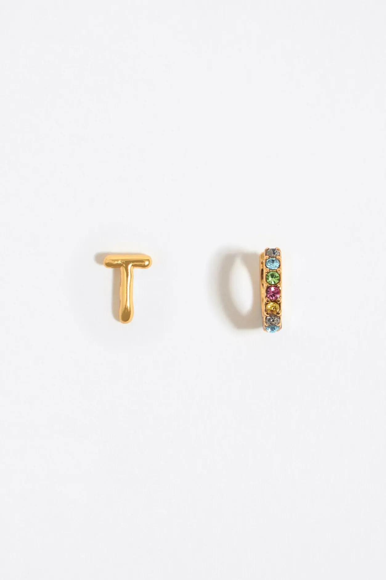 Outlet BIMBA Y LOLA Pendientes Letra T Y Aro Mini Cristales Multicolores