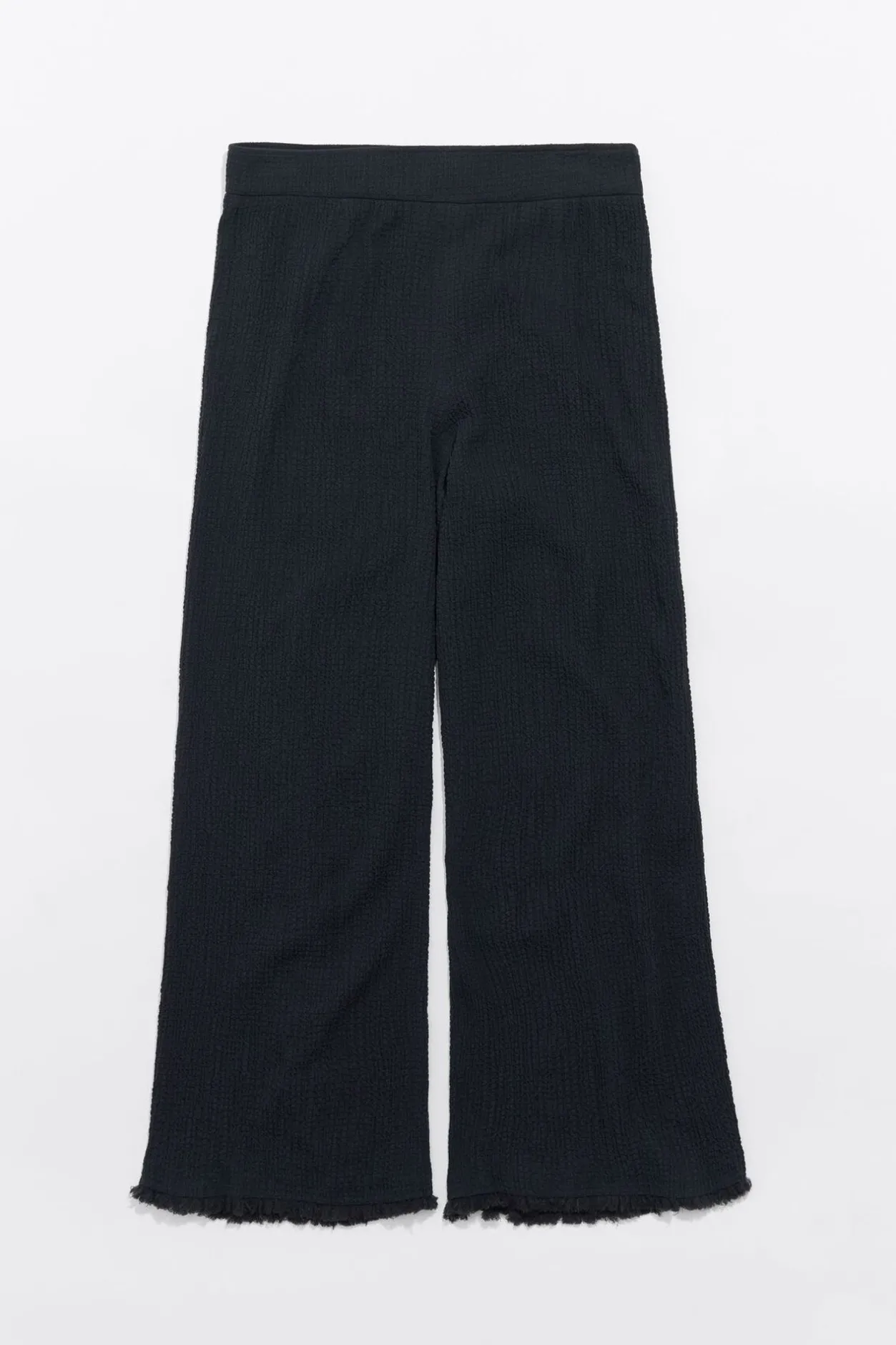 PantalÓN Tobillero De Viscosa Con Textura En Color Antracita. Modelo De Corte Recto, Con Cierre De Cremallera Lateral Y Desflecado En El Bajo.