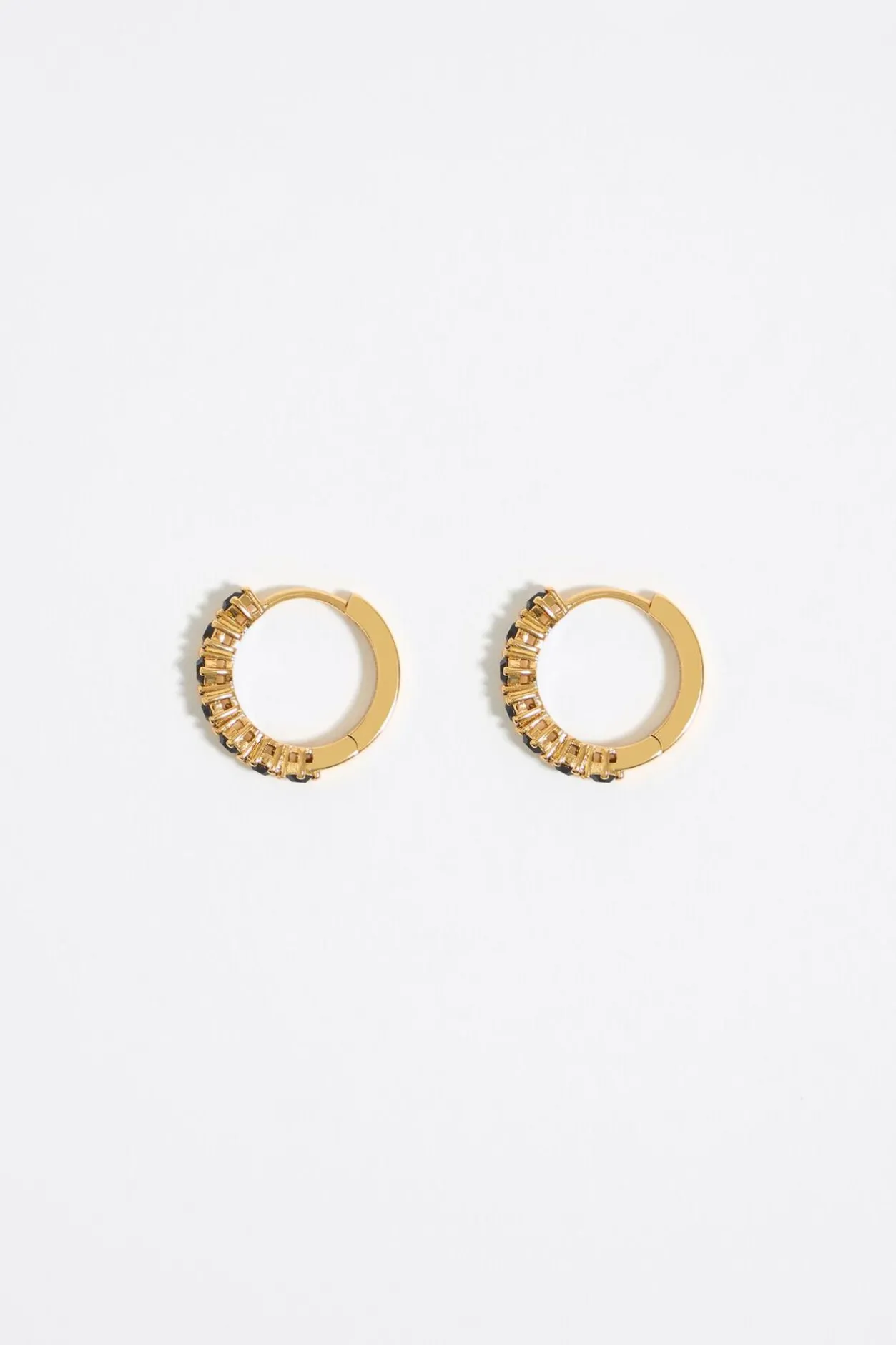 Sale BIMBA Y LOLA Pendientes Aro Cristales Negros Dorado
