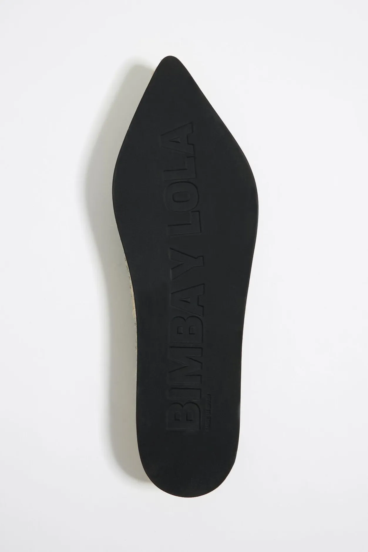Bailarina De Serraje En Color Gris Acabada En Punta. Modelo Destalonado Con ElÁStico Trasero. Etiqueta Con Logo Bordado En Plantilla Y Piso De Yute Con Suela Personalizada.