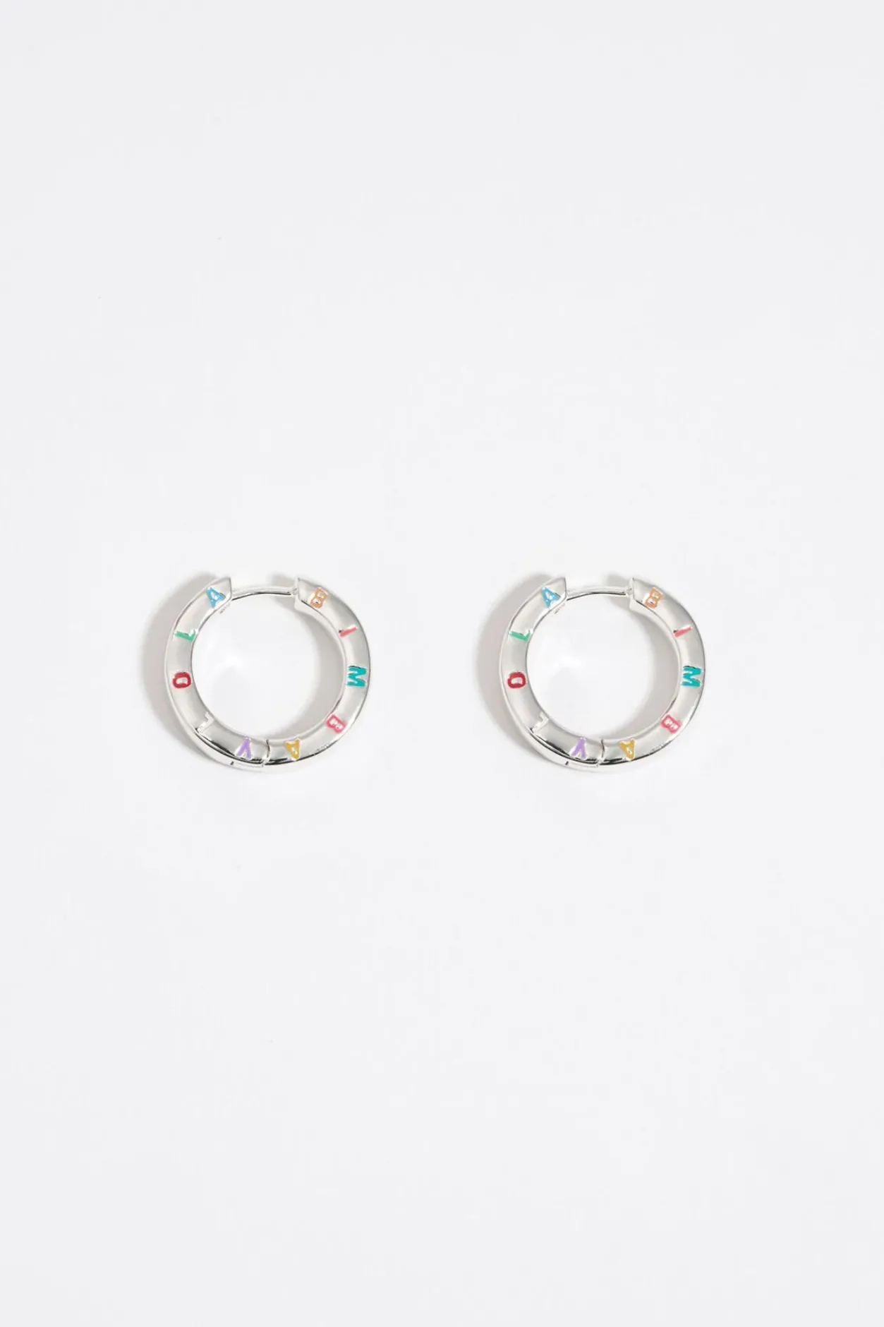 Shop BIMBA Y LOLA Pendientes Aro Plateados Logo Multipastel
