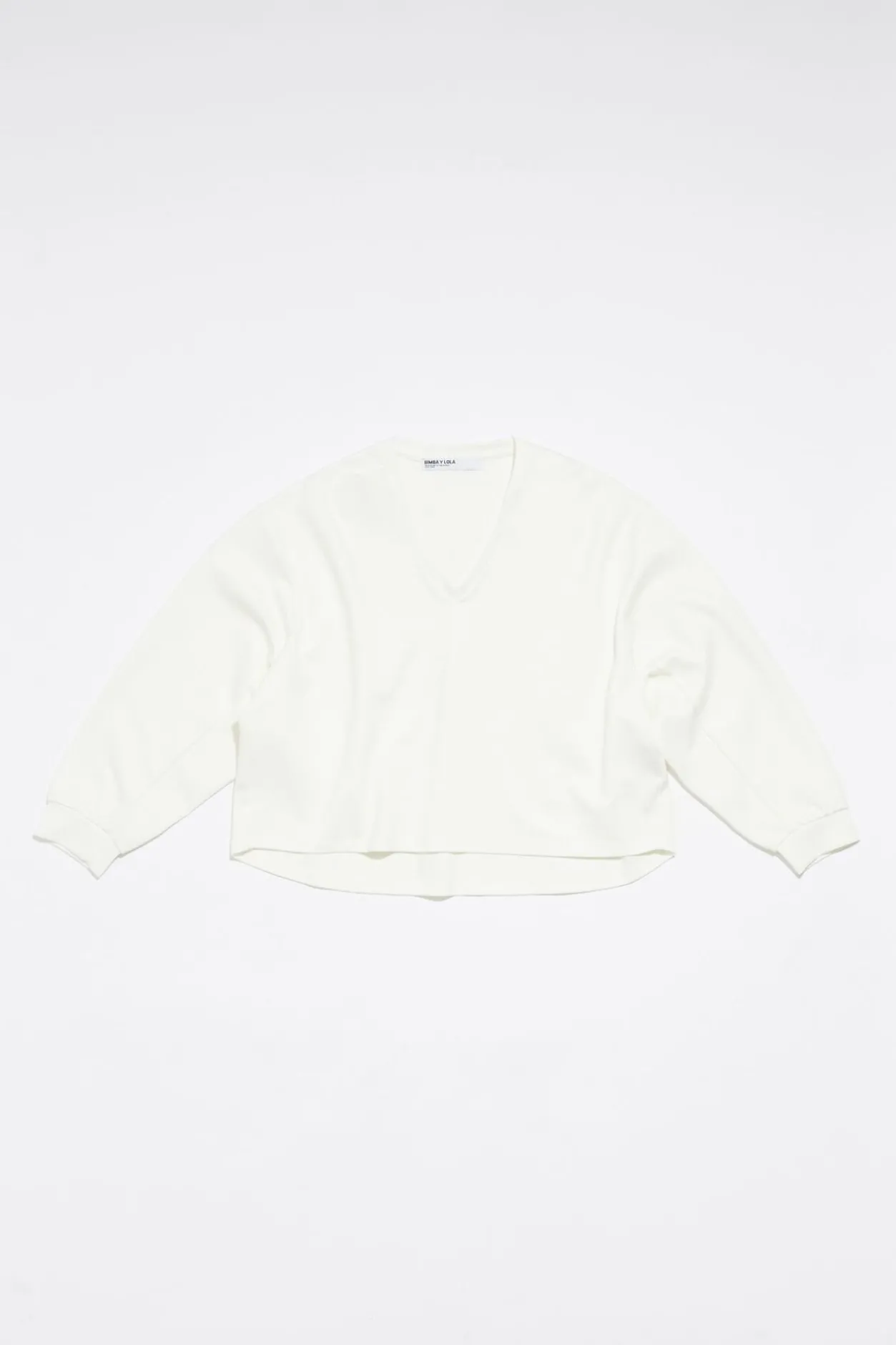 Camiseta De Punto Roma En Color Blanco. Modelo De Corte Recto, Manga Larga Y Cuello De Pico.