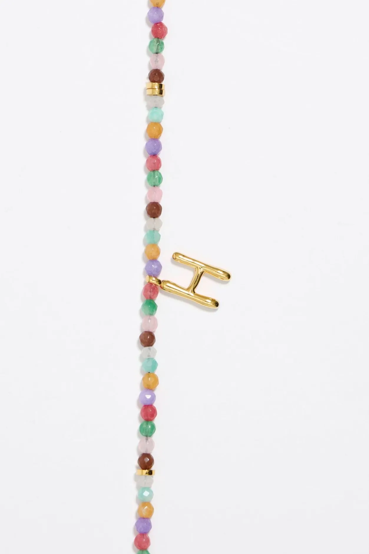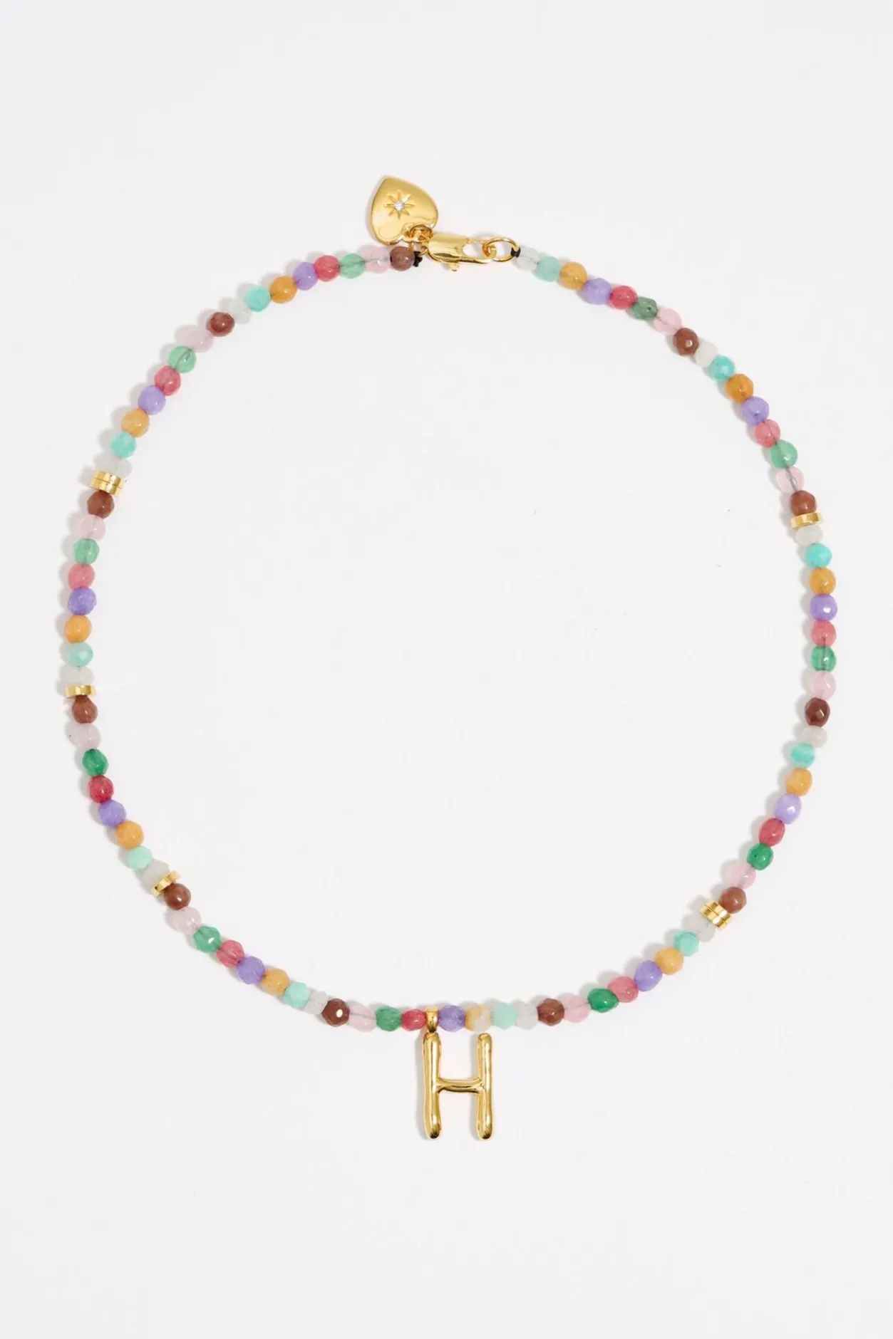 Collar Corto De Piedras Multicolores Con Letra H De Metal Dorado. Modelo Con Cierre De MosquetÓN Y Pieza En Forma De CorazÓN De Metal Dorado Con Cristal.