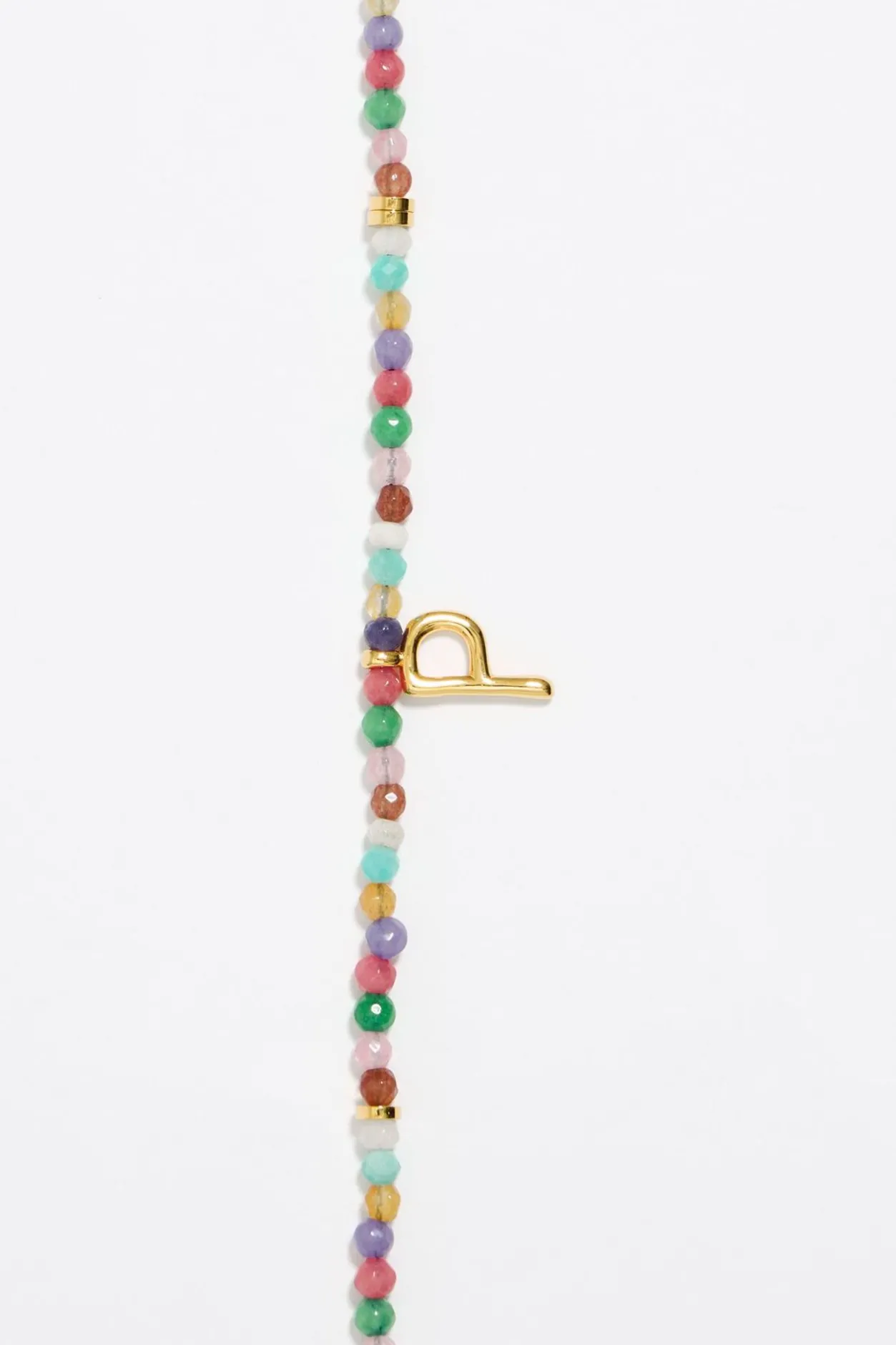 Collar Corto De Piedras Multicolores Con Letra P De Metal Dorado. Modelo Con Cierre De MosquetÓN Y Pieza En Forma De CorazÓN De Metal Dorado Con Cristal.