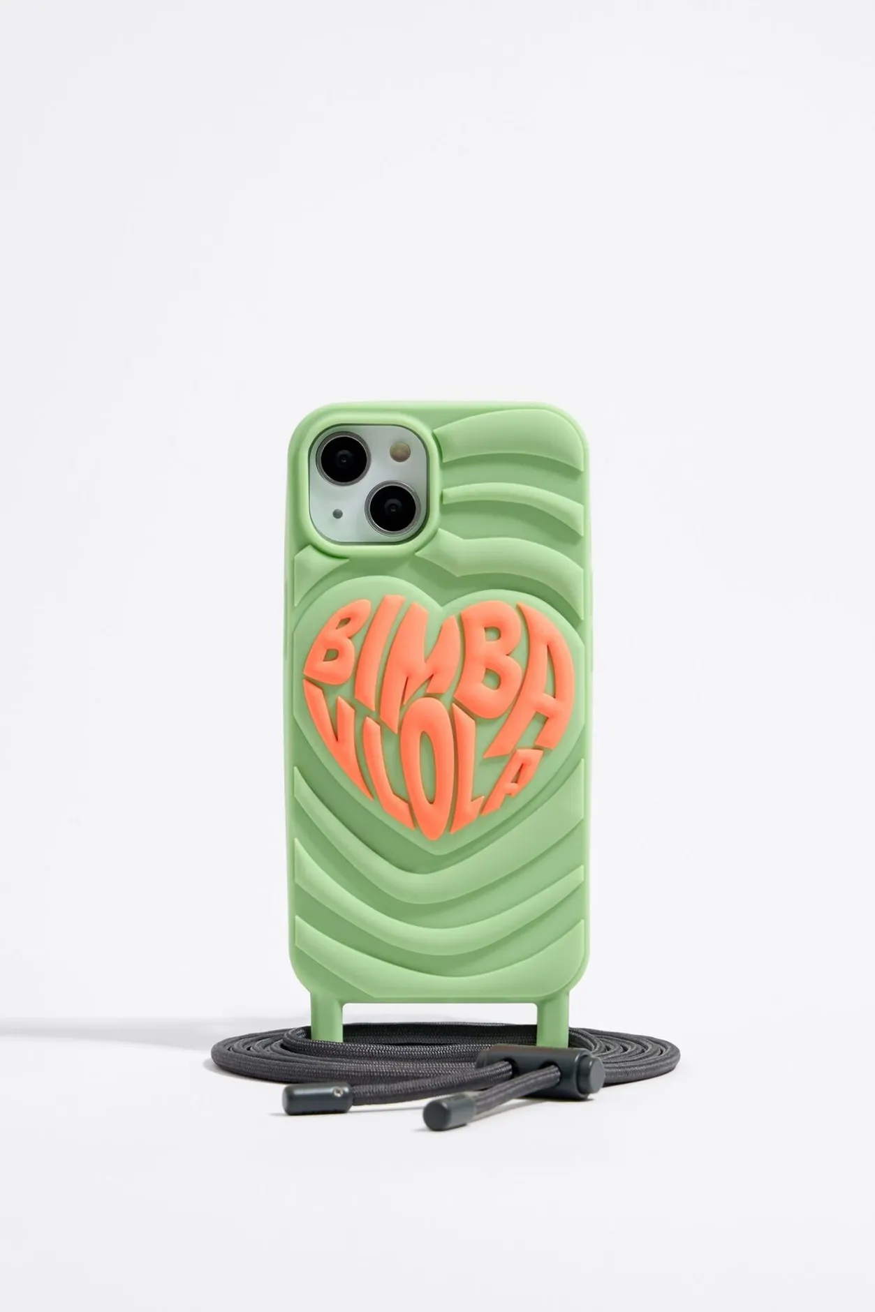 Funda Para Iphone 13 De Silicona Personalizada Con Logo CorazÓN En Color Verde. Modelo Con Cabo Ajustable.