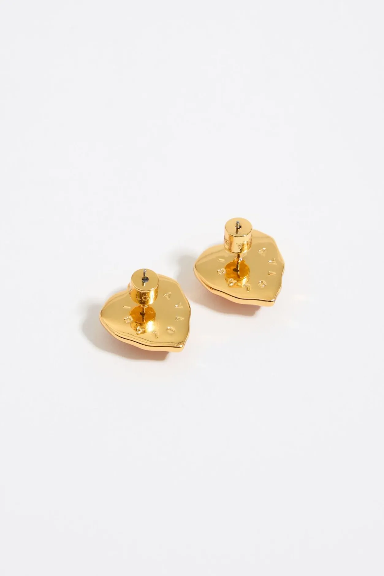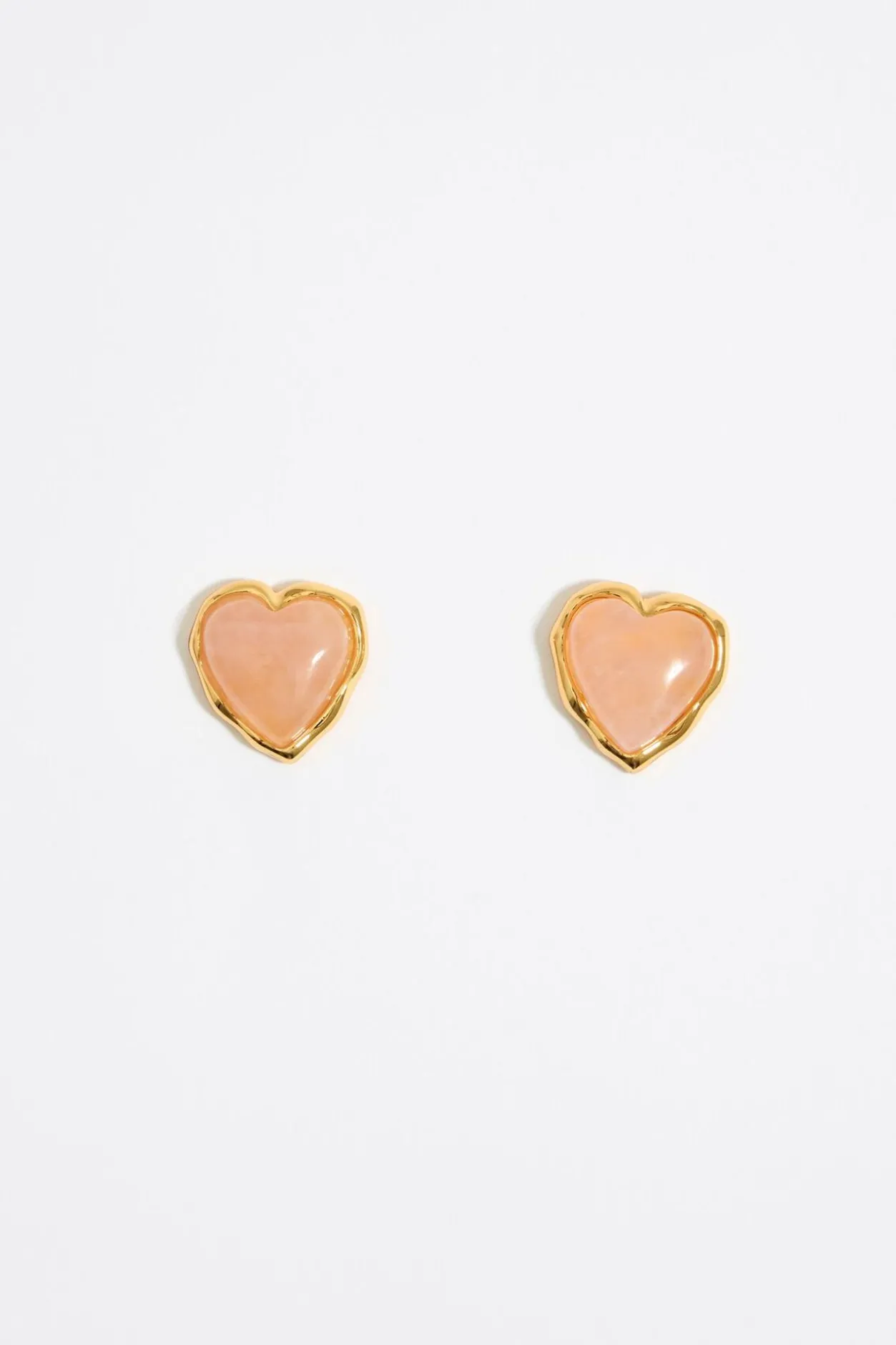 Pendientes De Metal Dorado En Forma De CorazÓN Y Piedra En Color Rosa Claro. Modelo Con Cierre A PresiÓN. Personalizado Con El Logo Grabado.