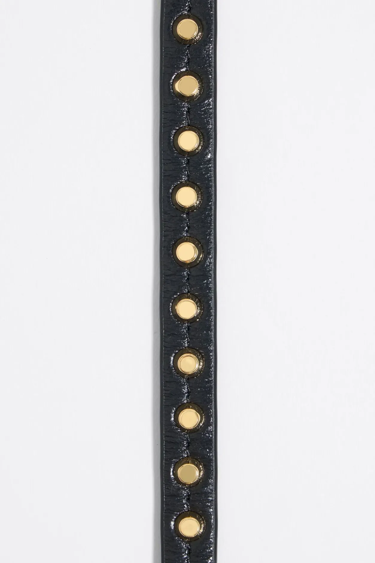 Pulsera De Piel En Color Negro Con Tachas Doradas. Modelo Con Cierre De Hebilla Ajustable Personalizado Con Logo.