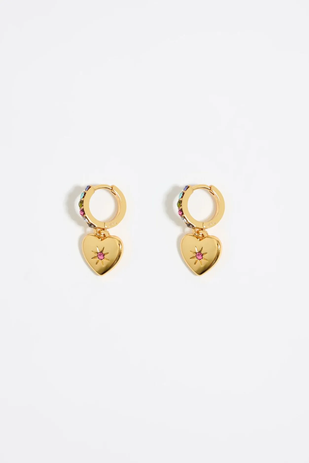 Best Sale BIMBA Y LOLA Pendientes Aro Mini Dorado Cristales Y Corazon