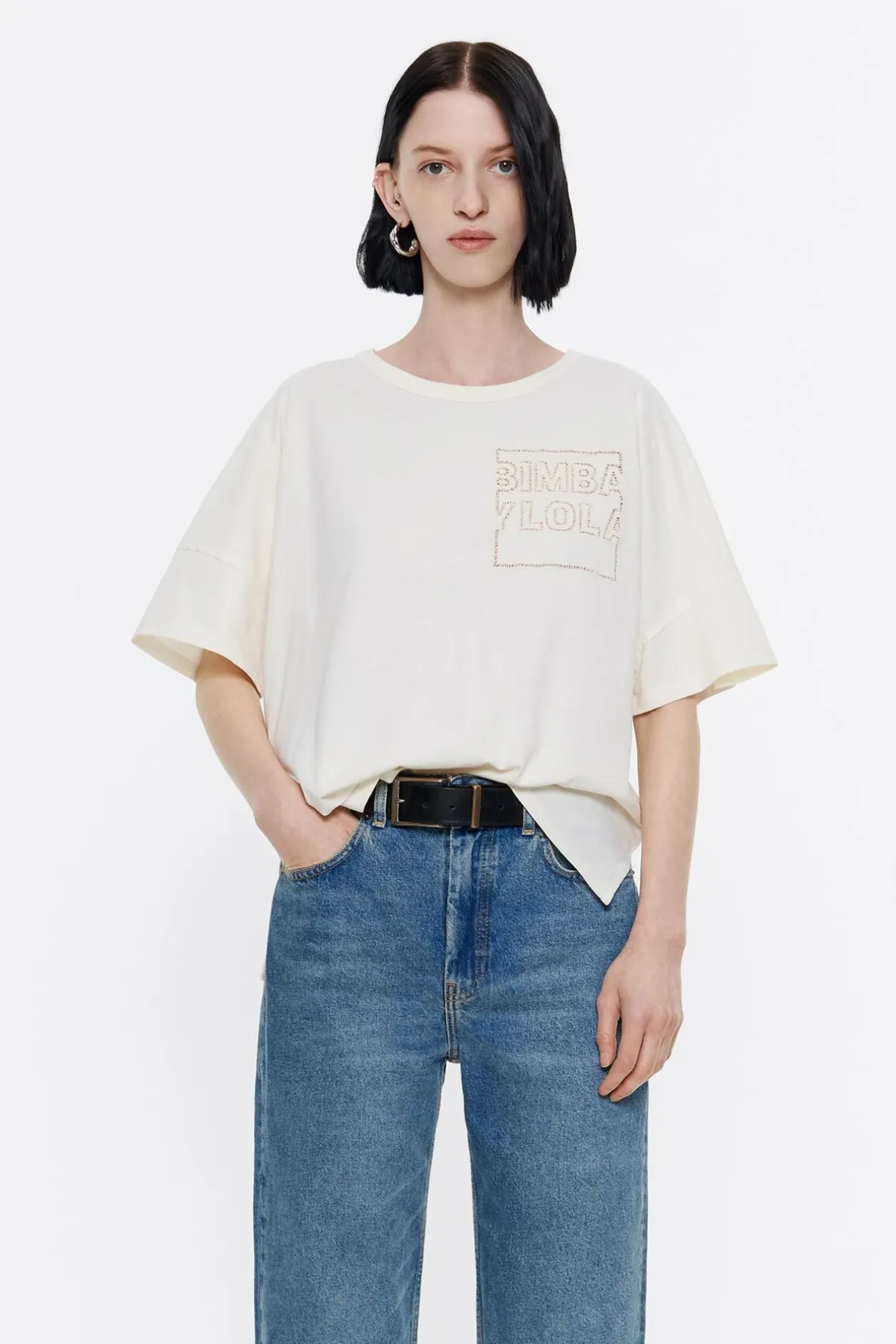 Cheap BIMBA Y LOLA Camiseta Logo Bordado Marfil