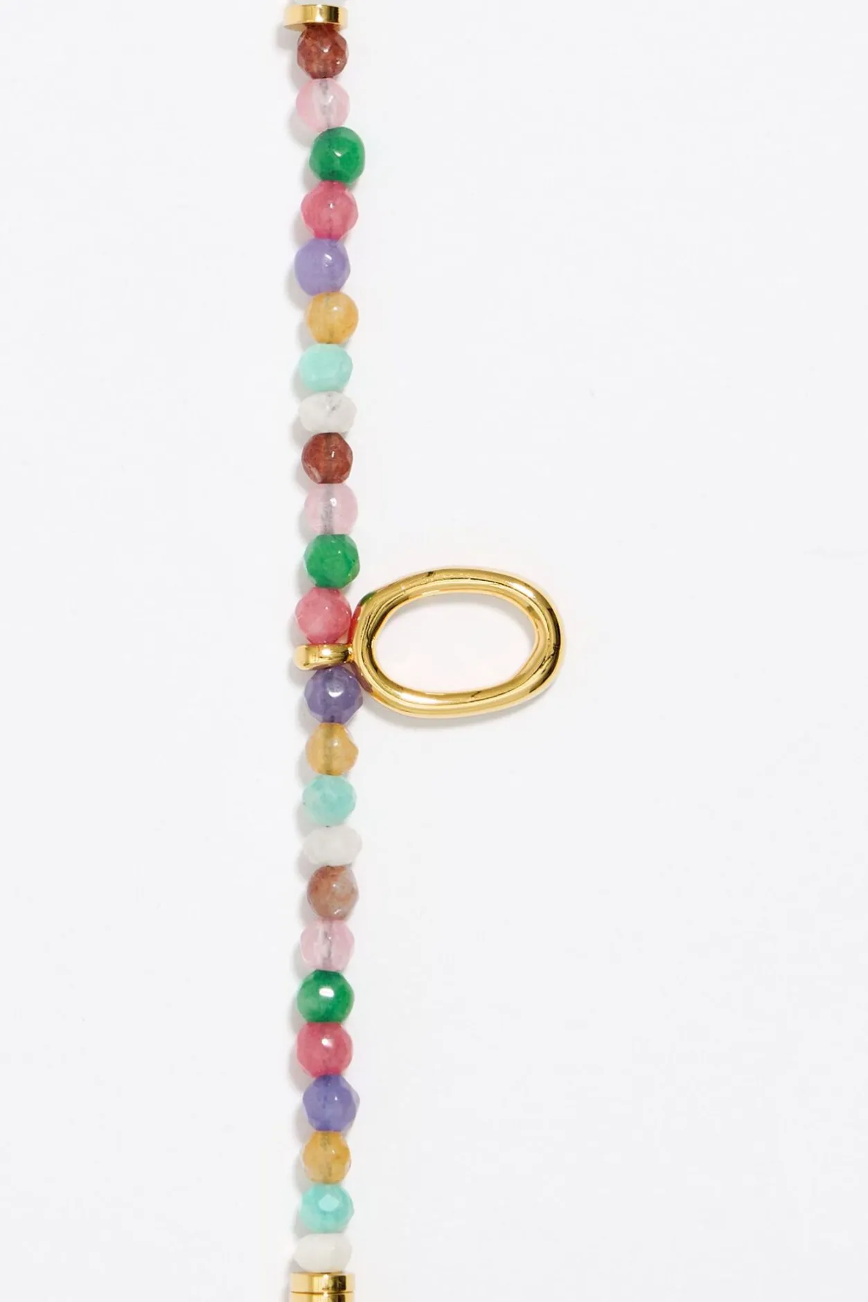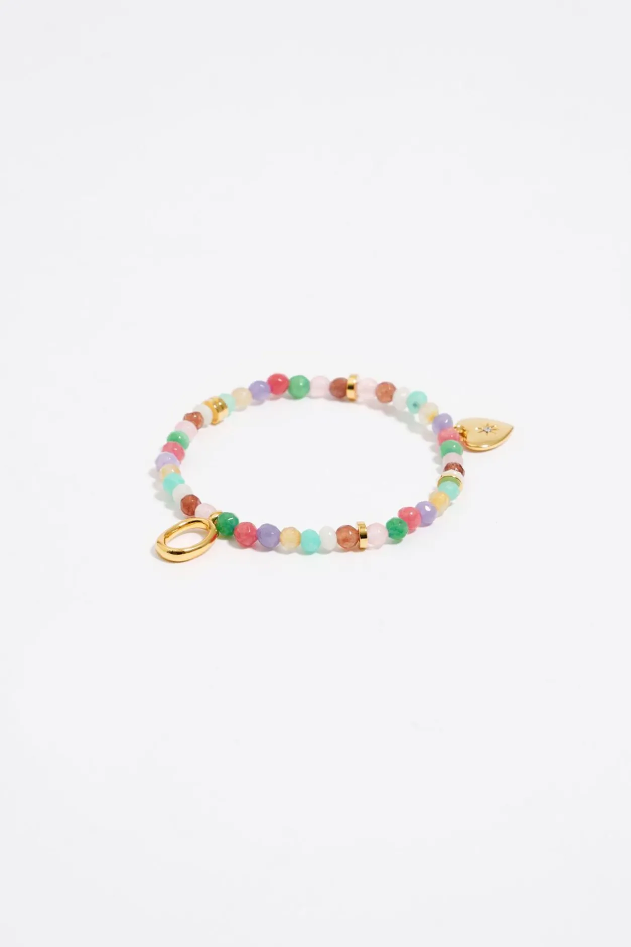 Pulsera ElÁStica De Piedras Multicolores Con Letra O De Metal Dorado. Modelo Con Pieza En Forma De CorazÓN De Metal Dorado Con Cristal.
