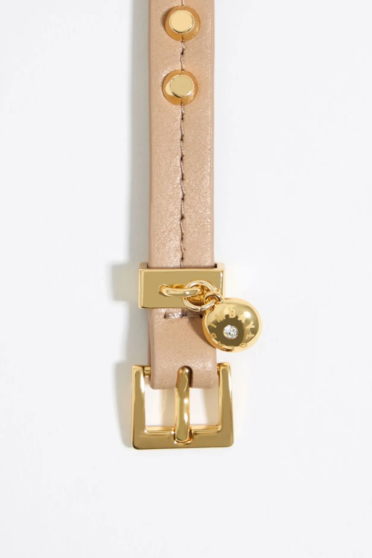 Pulsera De Piel En Color Arena Con Tachas Doradas. Modelo Con Cierre De Hebilla Ajustable Personalizado Con Logo.