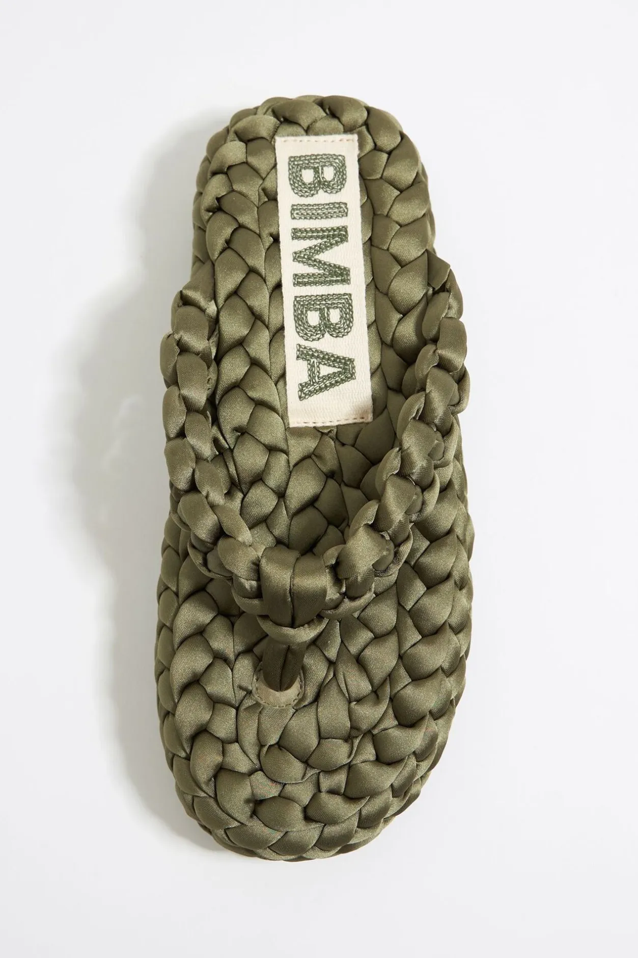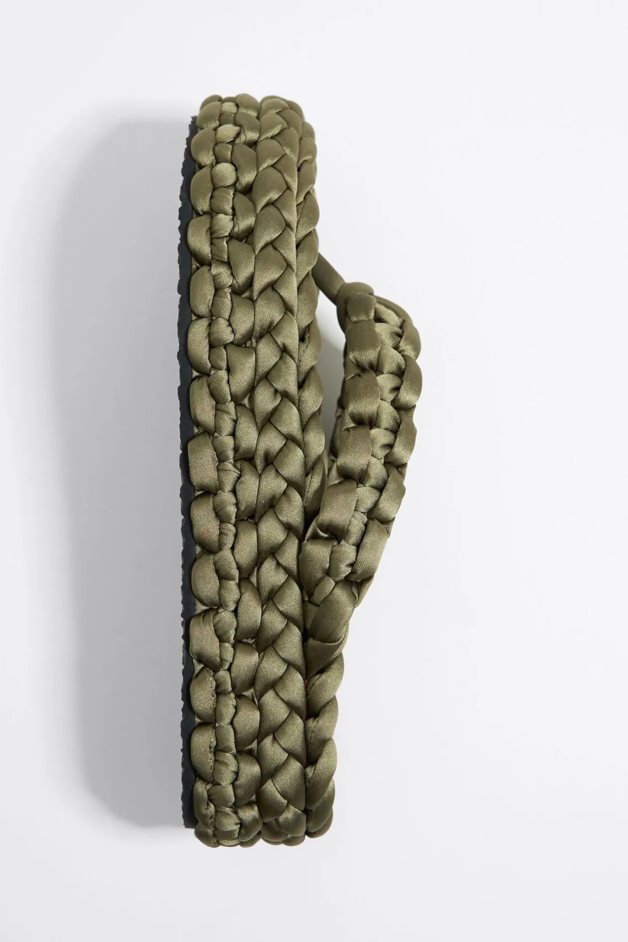 Sandalia Plana De Dedo Con Tubular Trenzado A Mano En Color Verde. Modelo Con Pala, Etiqueta Con Logo Bordado En La Planta Y Suela Logotipada.