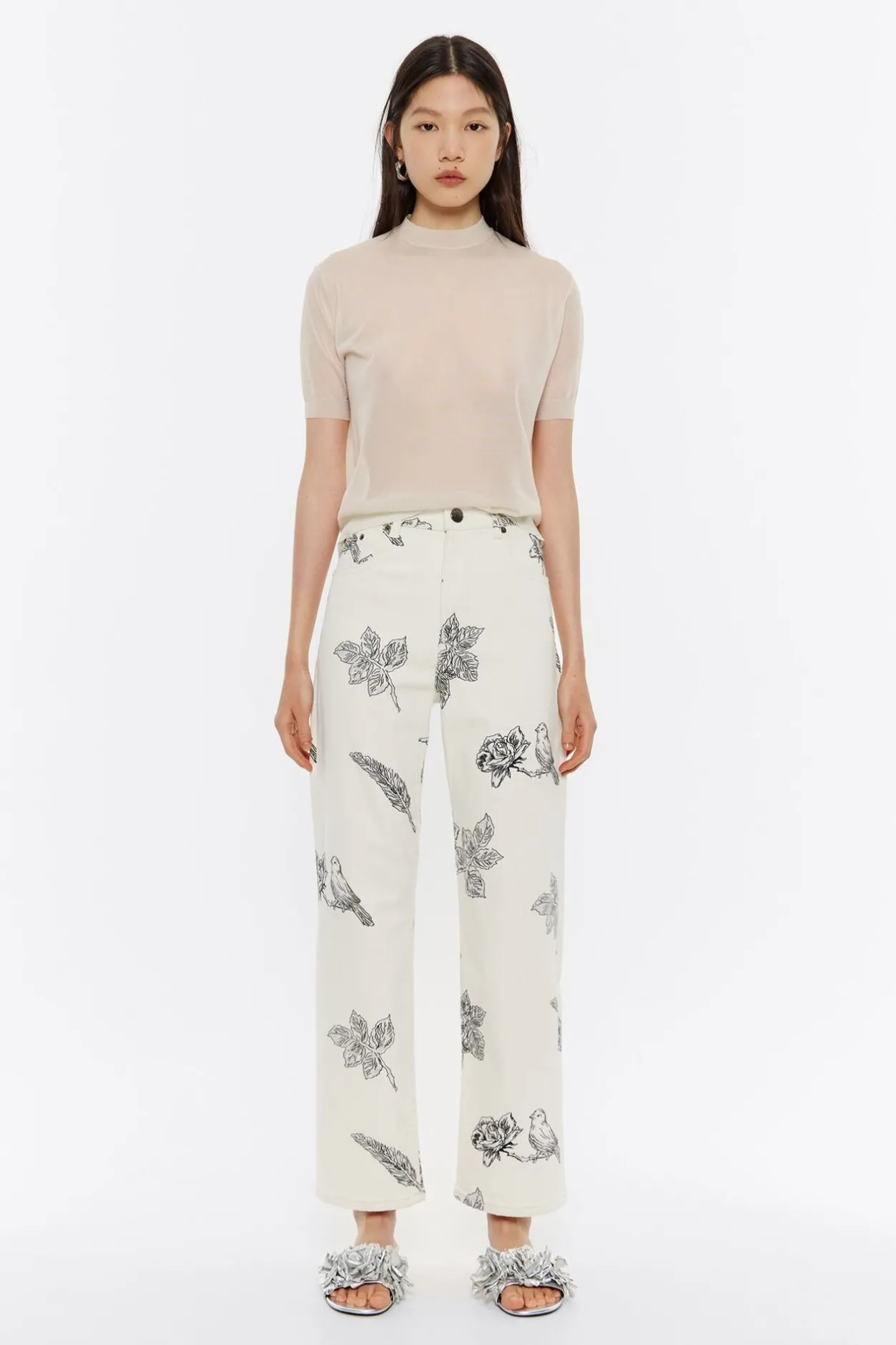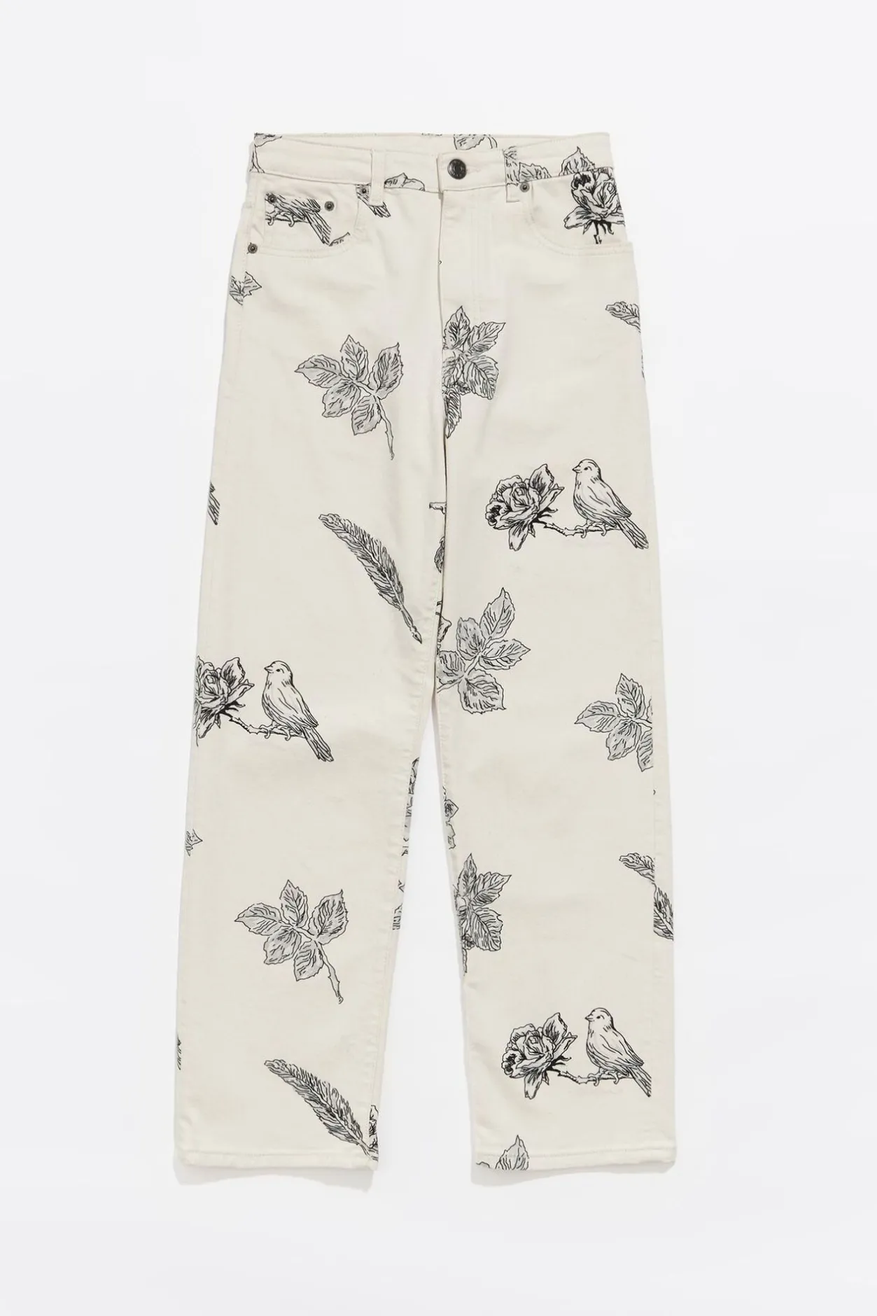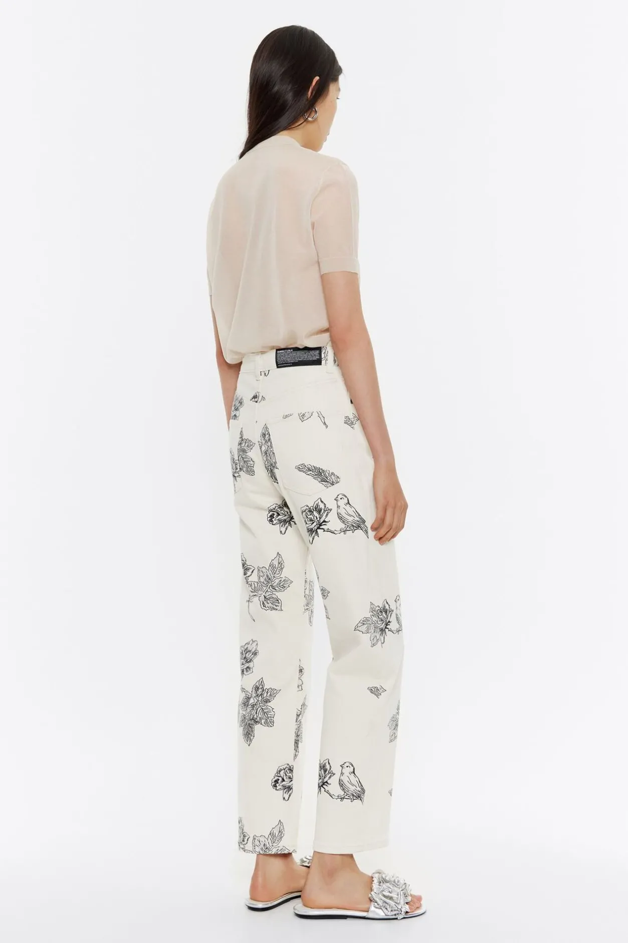 PantalÓN Vaquero Con Print Canary Pop En Color Blanco. Modelo De Corte Recto, Largo Tobillero, Tiro Alto Y Cinco Bolsillos. Cierre Con BotÓN Denim Frontal. Este Modelo Contiene 20% Fibras Recicladas.