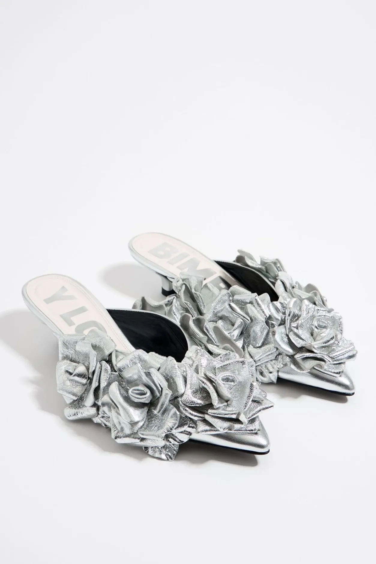 Cheap BIMBA Y LOLA Zapato Salon Flores Piel Plata