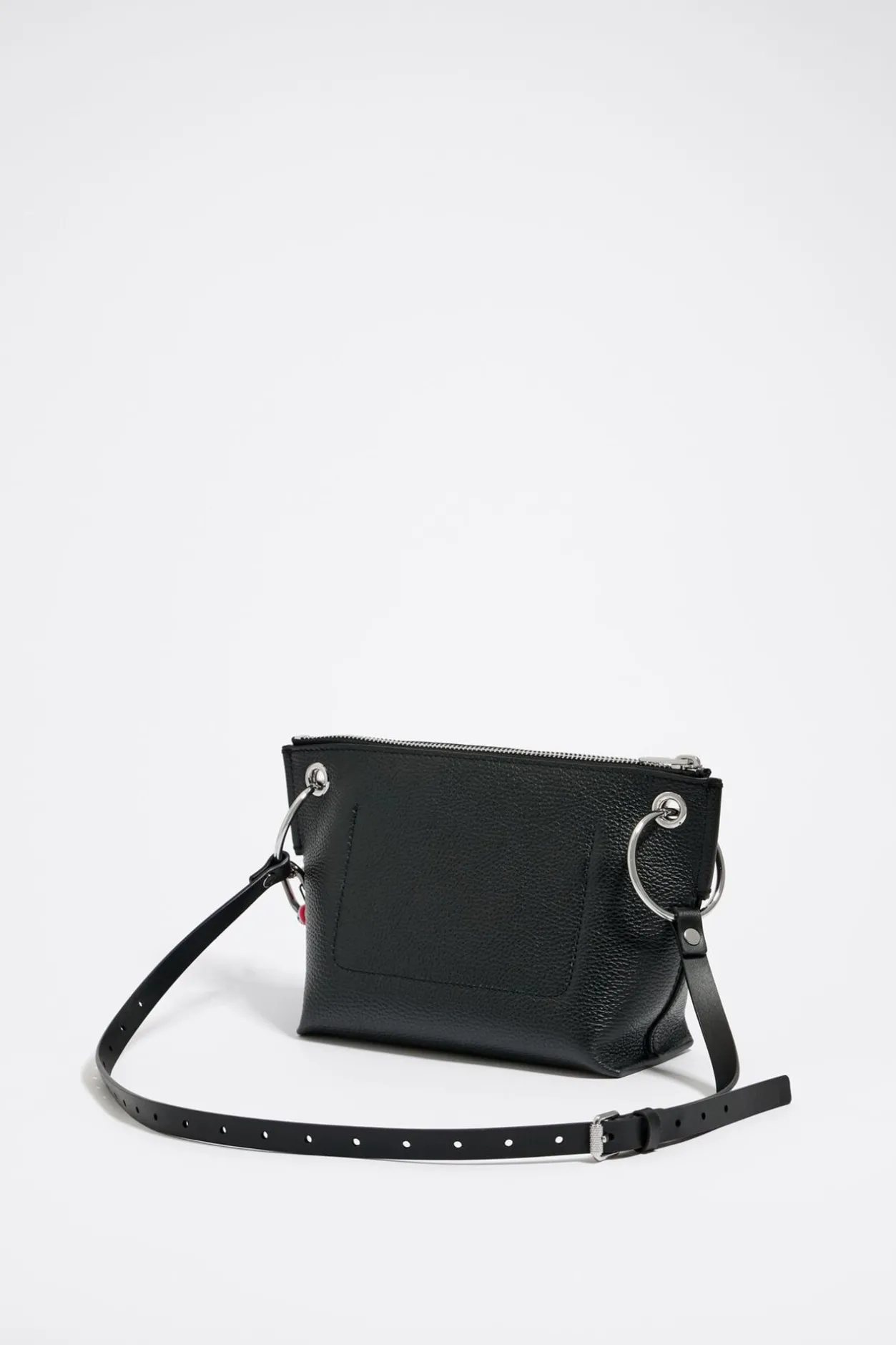 Bolso Bandolera De Piel Abatanada En Color Negro. Modelo De TamaÑO Mediano Con Cierre De Cremallera, Bolsillo Interior Plano Y Asa De Piel Regulable Con Charm. Exterior Personalizado Con Logo Lacado A Tono. 100% PoliÉSter Reciclado.
