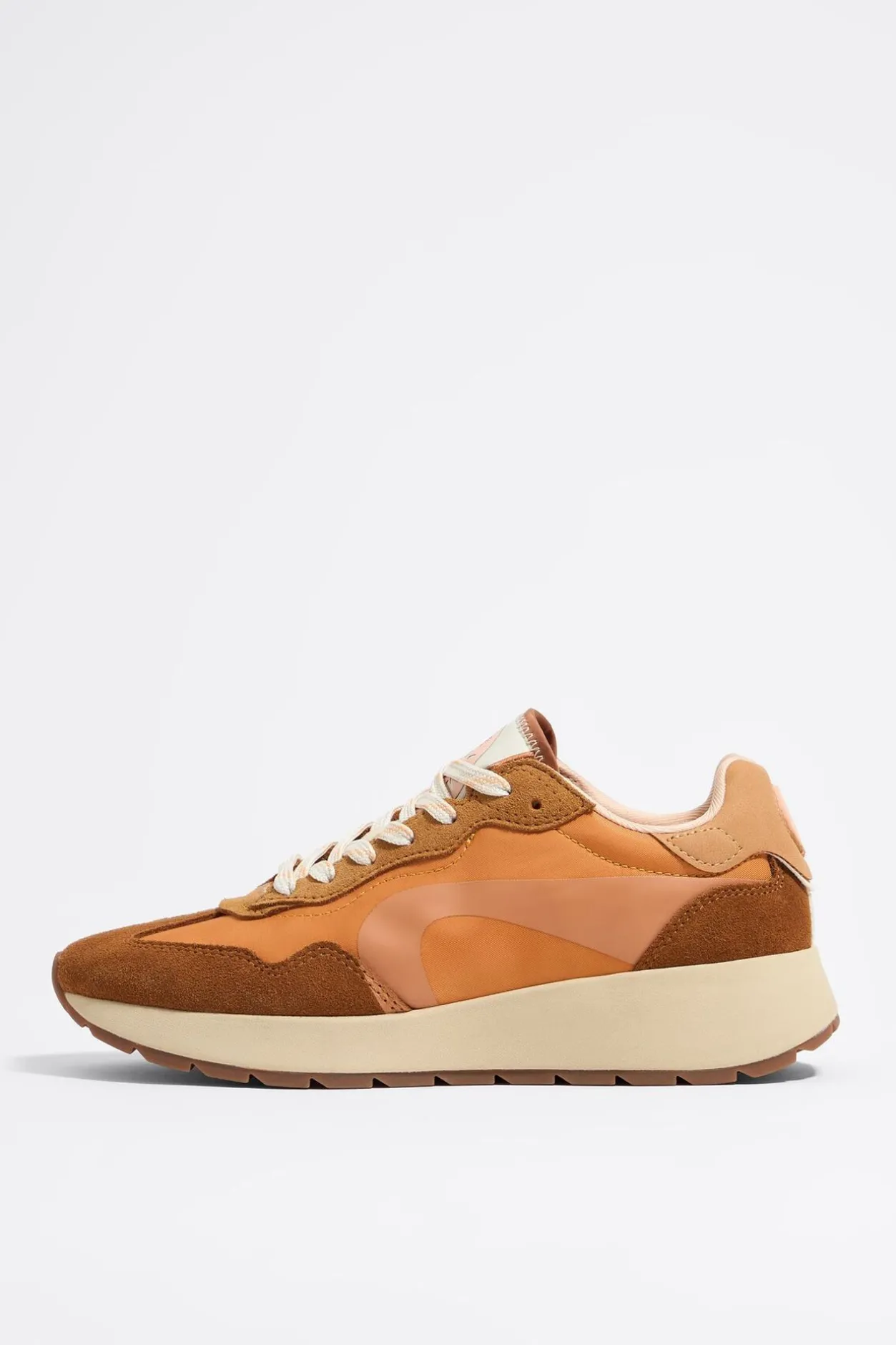 Deportiva Lifestyle En Color Naranja. Modelo Con Piezas De Serraje Combinadas Con Tejidos TÉCnicos. Logo Lateral Pintada Y LengÜEta Con Logo Chimo. Parte Trasera Con Logo En El TalÓN. Piso Bicolor Personalizado Con Acabado Dentado.
