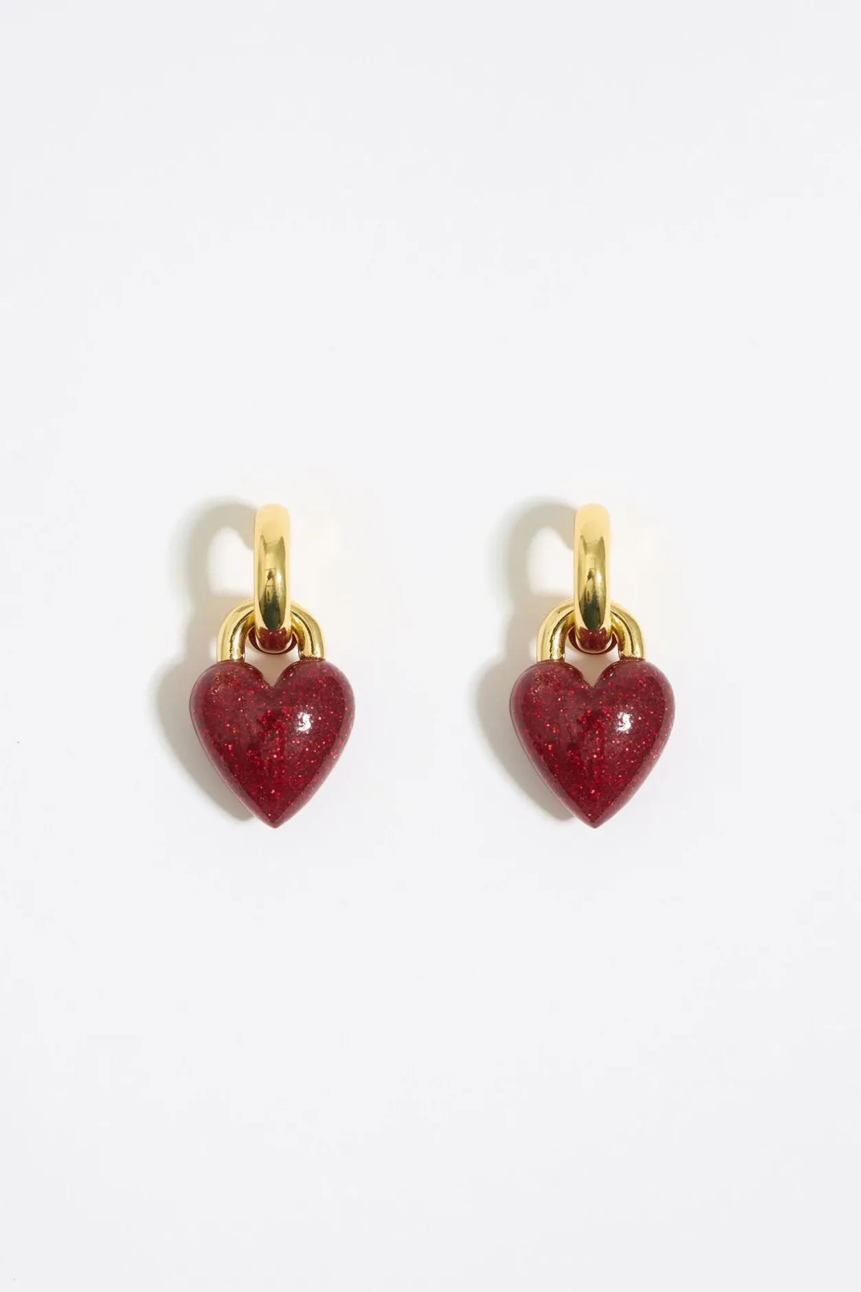 Clearance BIMBA Y LOLA Pendientes Aro Corazon Glitter Rojo