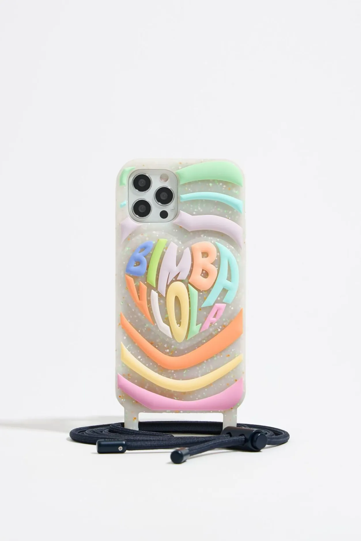 Funda Para Iphone 12/12 Pro De Silicona Multicolor Personalizada Con Logo CorazÓN. Modelo Con Cabo Ajustable.