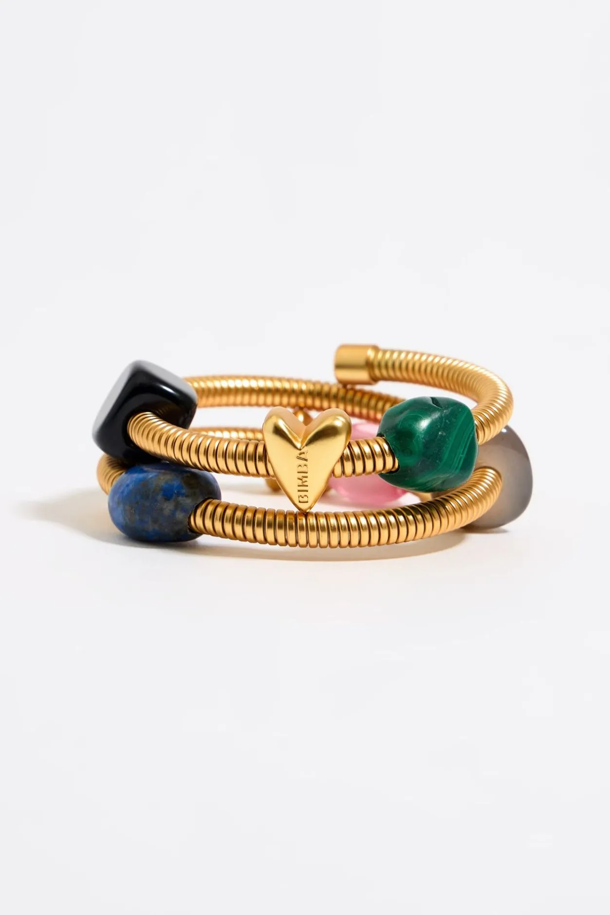 Discount BIMBA Y LOLA Pulsera Espiral Dorada Piedras Y Corazones