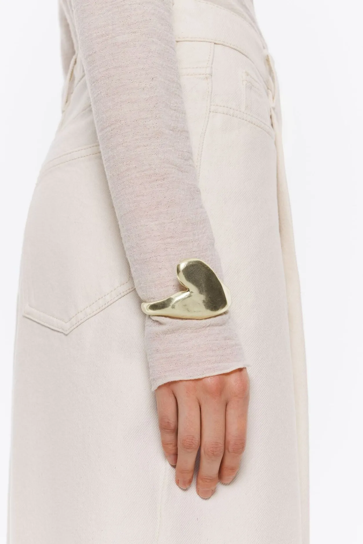 Pulsera RÍGida De Metal Dorado Con CorazÓN Con Textura En Color Dorado Claro.