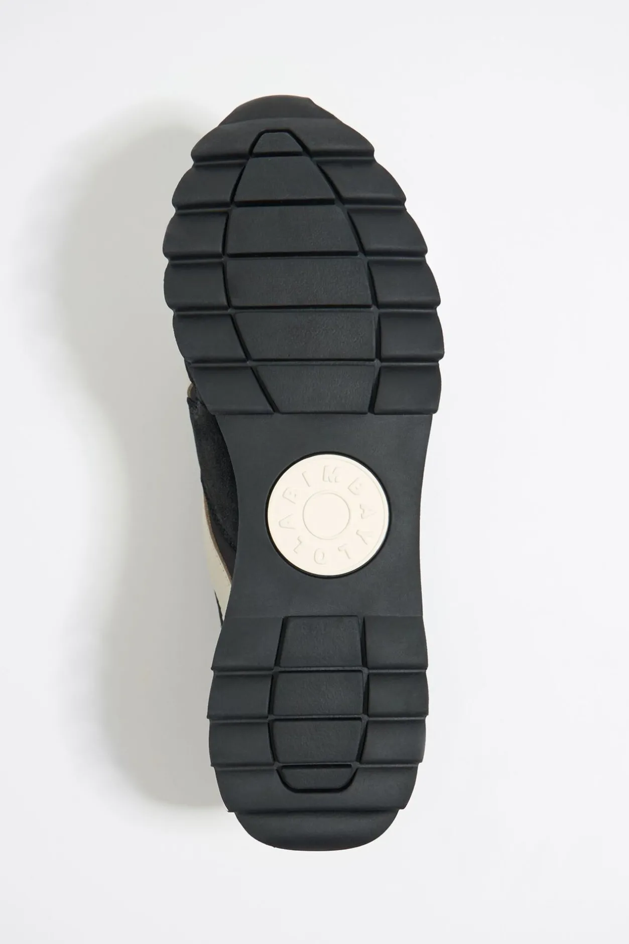Deportiva TÉCnica En Color Negro. Modelo Con Piezas De Serraje Encerado Combinadas Con Tejidos TÉCnicos. Empeine Festoneado Con Logo Lateral De Piel, LengÜEta Logotipada Y Parte Trasera De Glitter Con Logo Pintado A Contraste. Estabilizador Personalizado, Entresuela Tricolor Y Suela Con Acabado Dentado.
