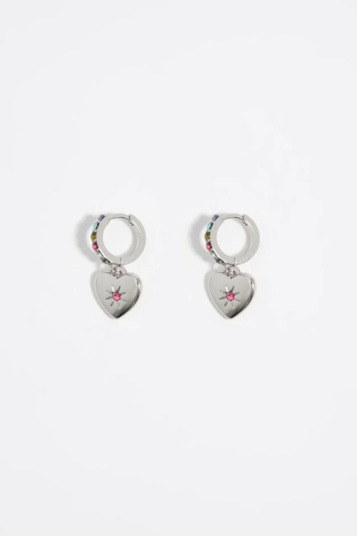 Flash Sale BIMBA Y LOLA Pendientes Aro Mini Plateado Cristales Y Corazon