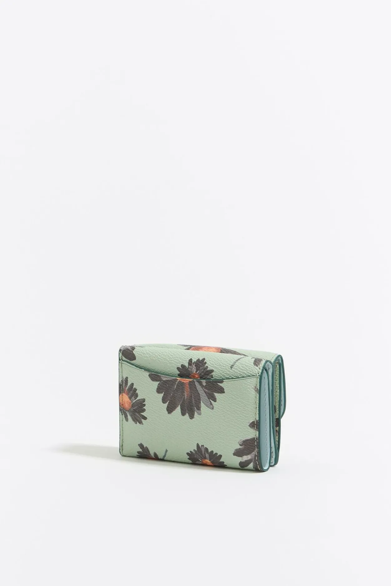Cartera Con Textura Caviar Y Print Daisy En Color Verde. Modelo Con Solapa, Cierre A PresiÓN Y Tarjetero Interior. Exterior Personalizado Con Logo MetÁLico. Este Modelo Contiene 100% Poliuretano De ProducciÓN Responsable + 100% PoliÉSter Reciclado + 100% AlgodÓN Reciclado