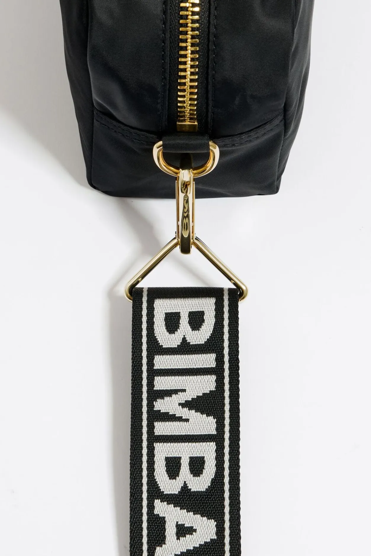 Bolso Bandolera De Tejido TÉCnico En Color Negro. Modelo De TamaÑO PequeÑO Con Cierre De Cremallera, Asa Logotipada ExtraÍBle Y Bolsillo Interior. Exterior Personalizado Con Logo MetÁLico.